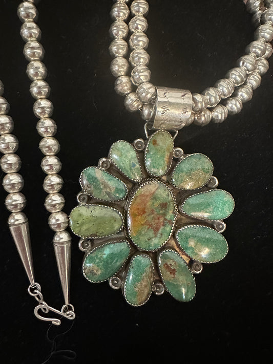 AUTHENTIC HANDMADE Navajo Pearls Bench Marked Turquoise and Sterling Silver