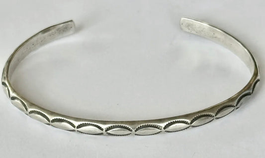 AUTHENTIC HANDMADE NAVAJO MARKED Sterling silver and Turquoise Stamped Cuff