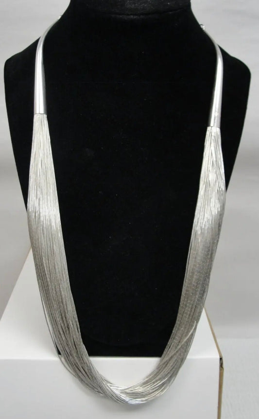 AUTHENTIC HANDMADE Navajo Sterling Liquid Silver Heishi Multi Strand Long Necklace 72g