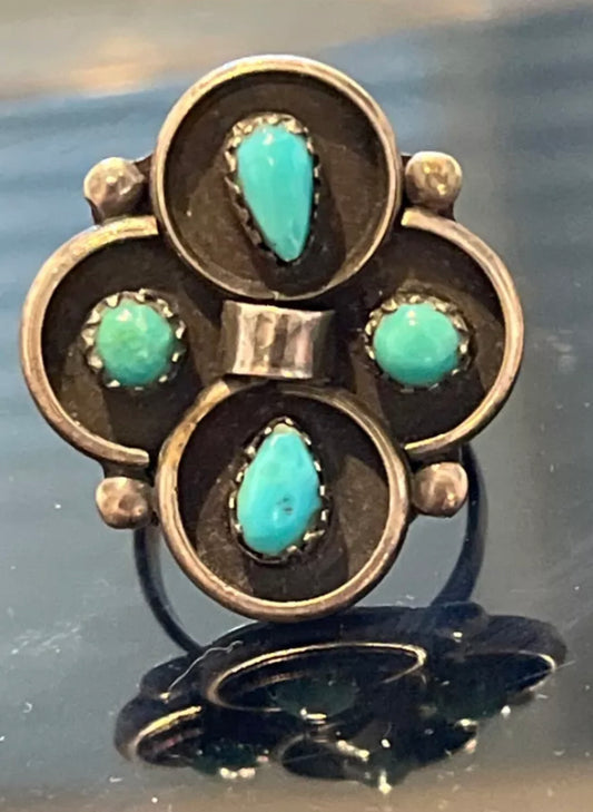 Old pawn sterling petit point & snake eye turquoises 6.5 ring