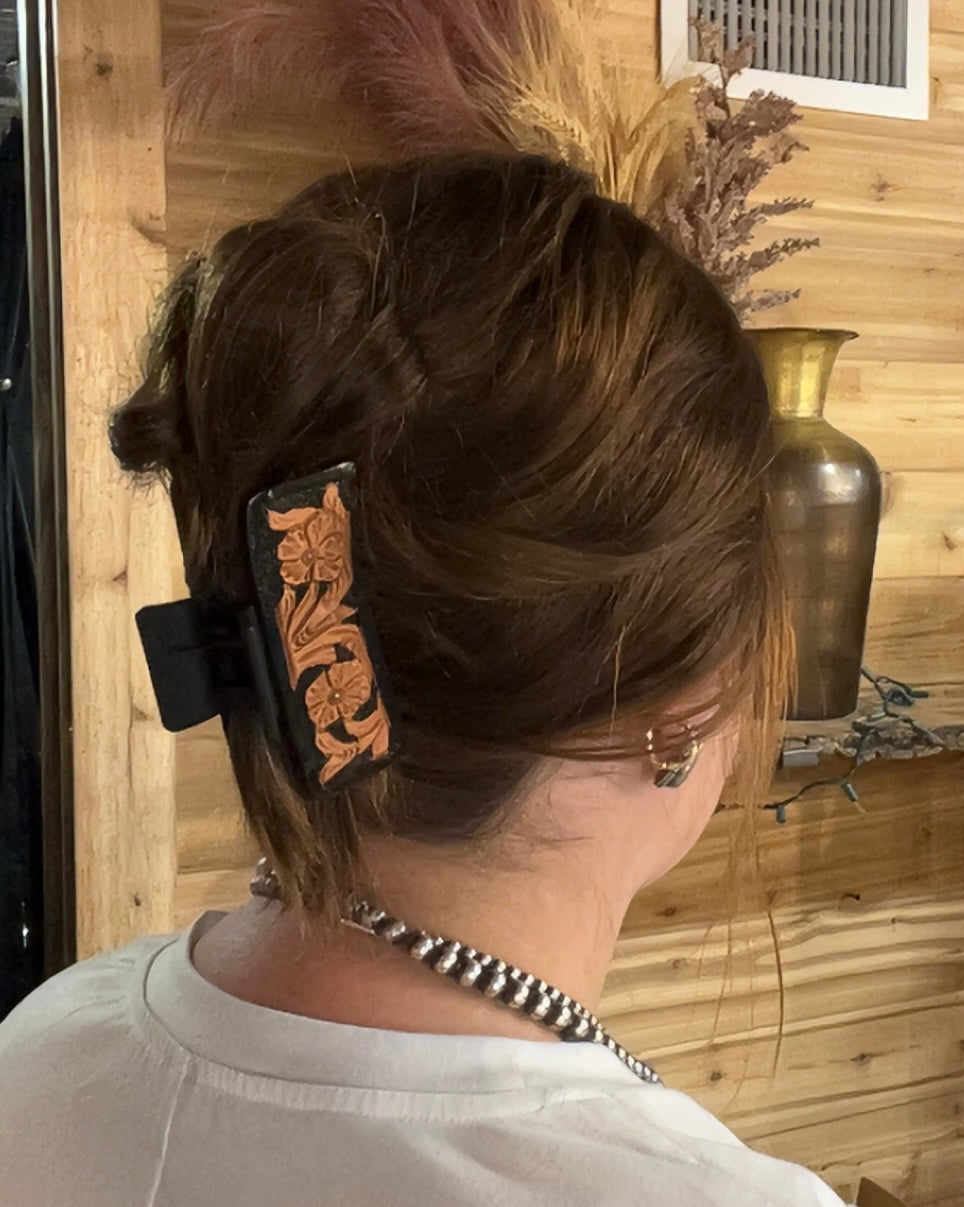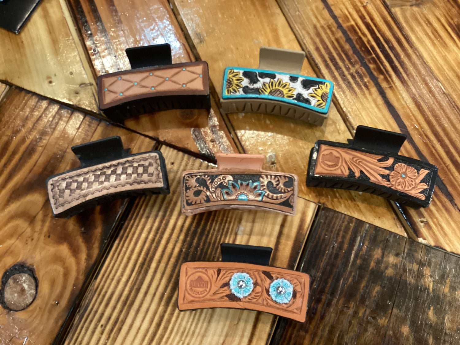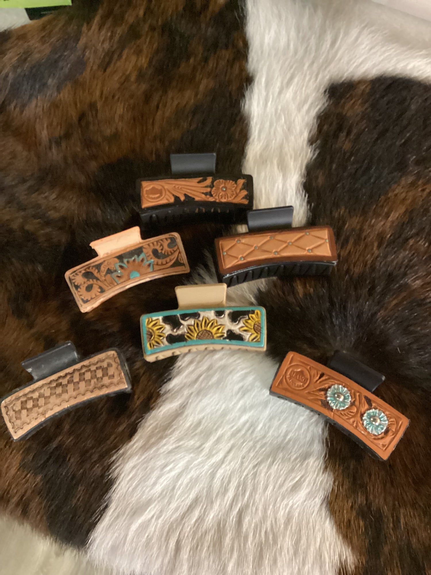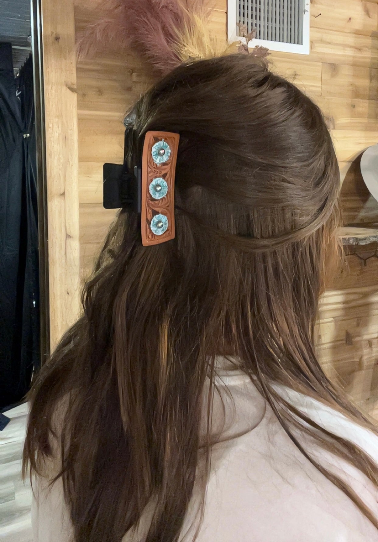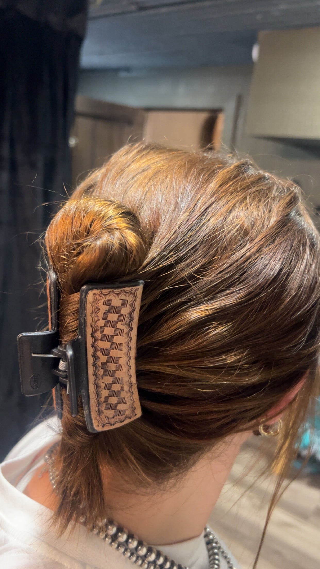 Genuine, leather hand, tool, custom claw clips. This car clip will add a little bit of to your updo.