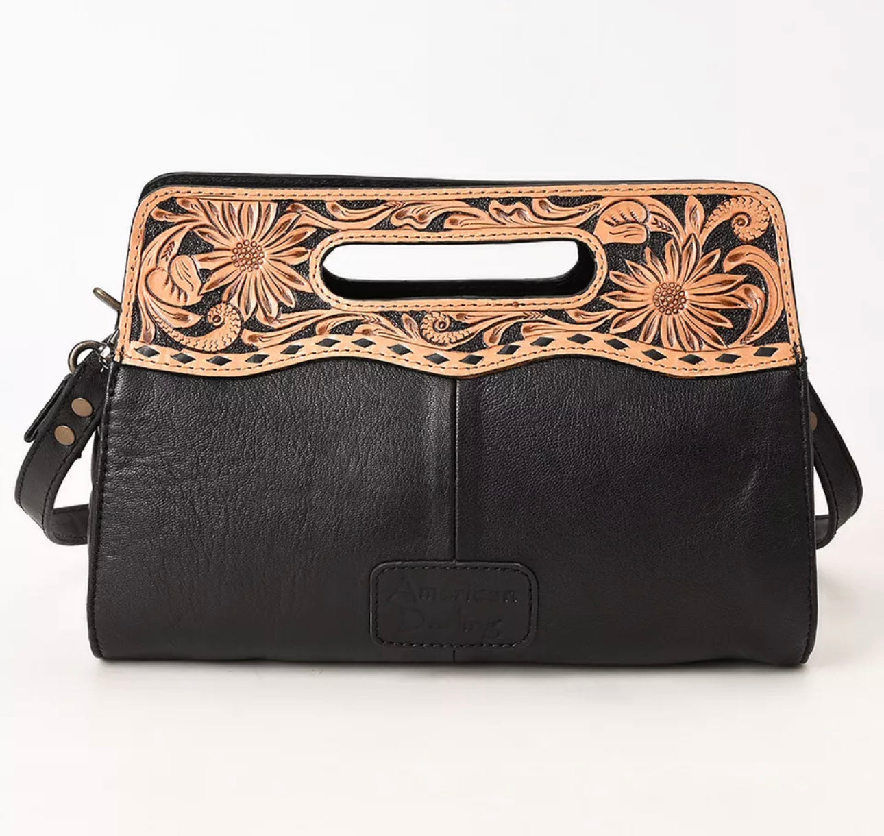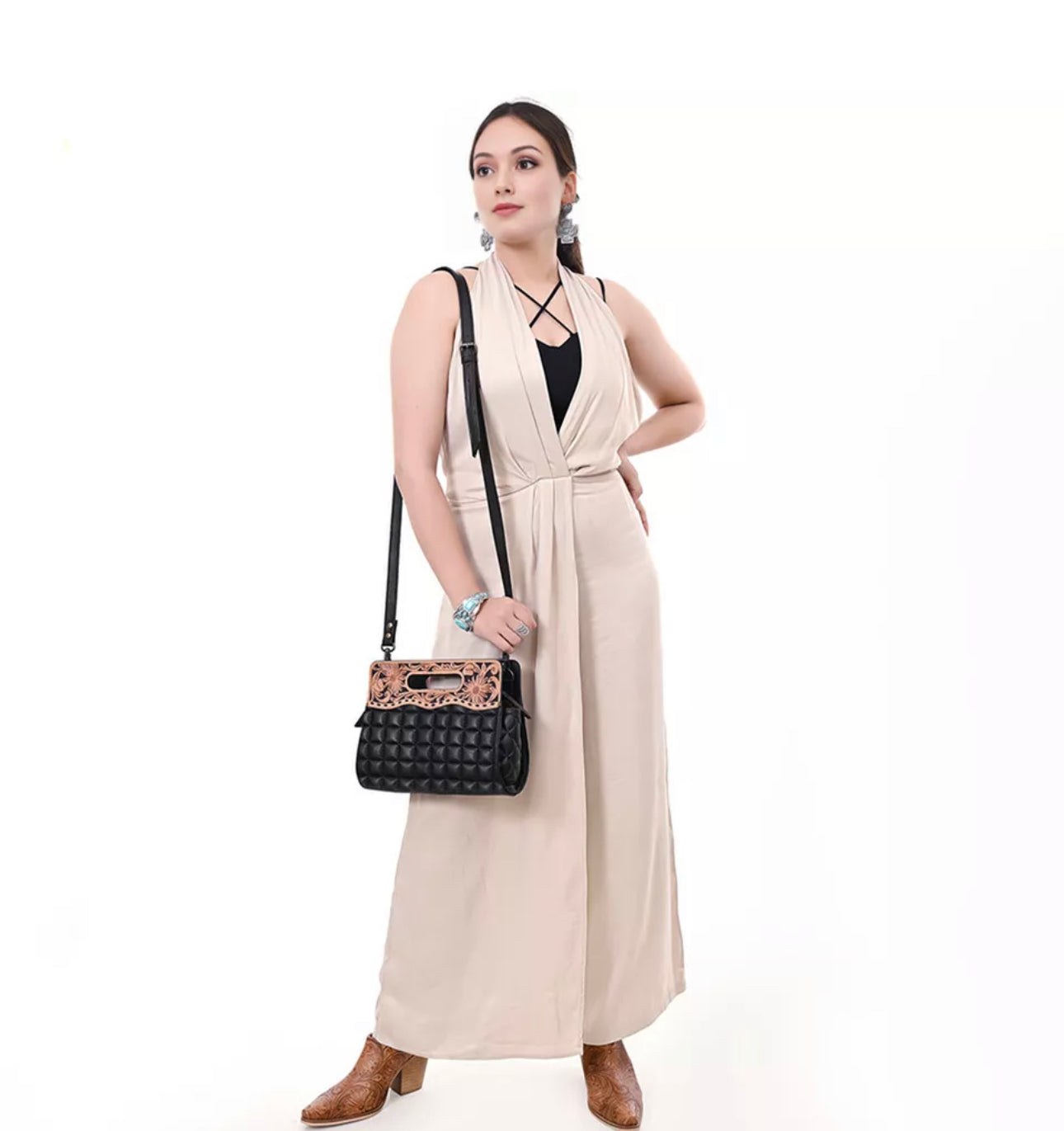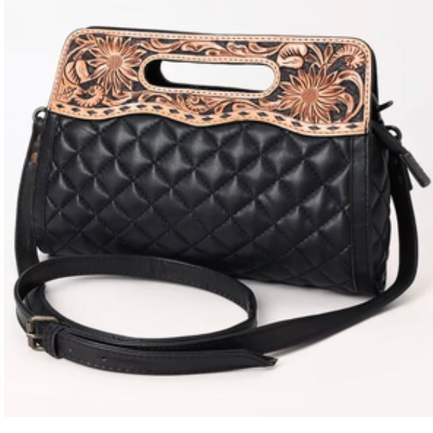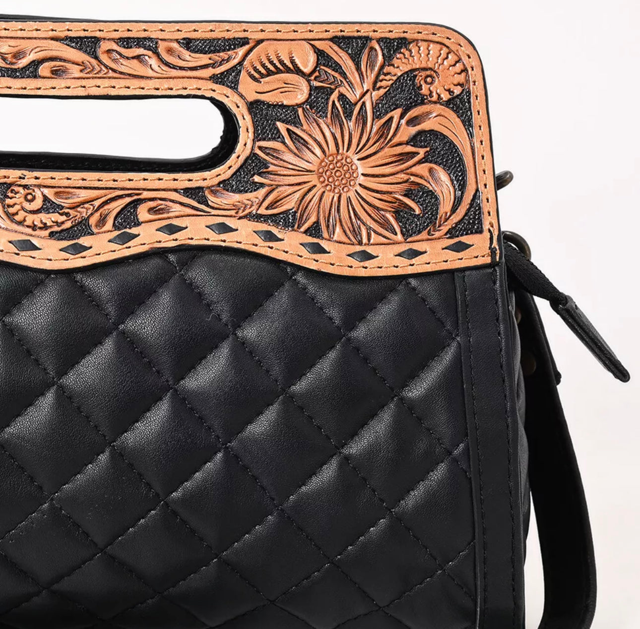 American Darling - Black Quilted Clutch Hand Tooled Genuine Leather women bag western Bag