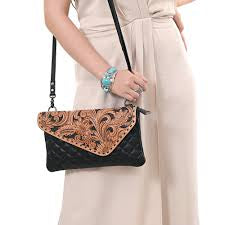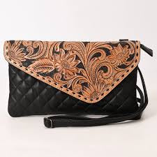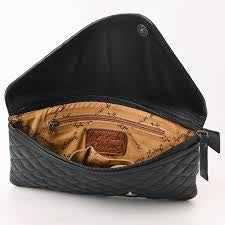 American Darling - Black Quilted CLUTCH Genuine Western Leather Women Bag