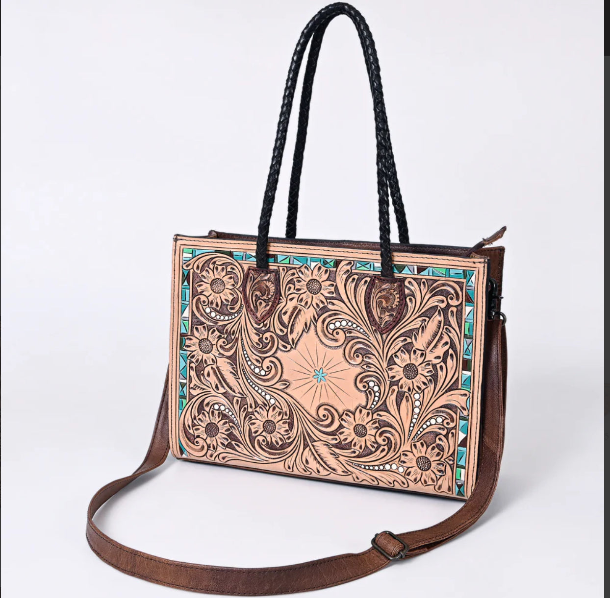American Darling tooled leather turquoise tote