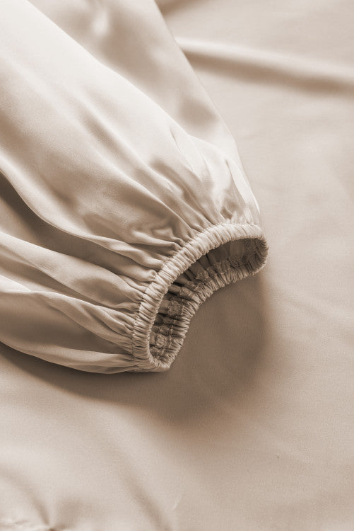Apricot Asymmetrical Neck Balloon Sleeve Satin Blouse