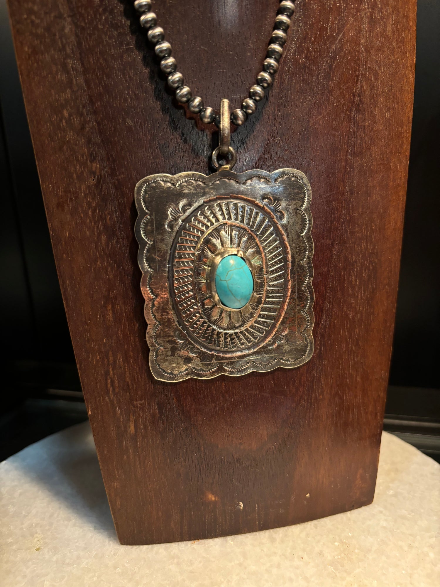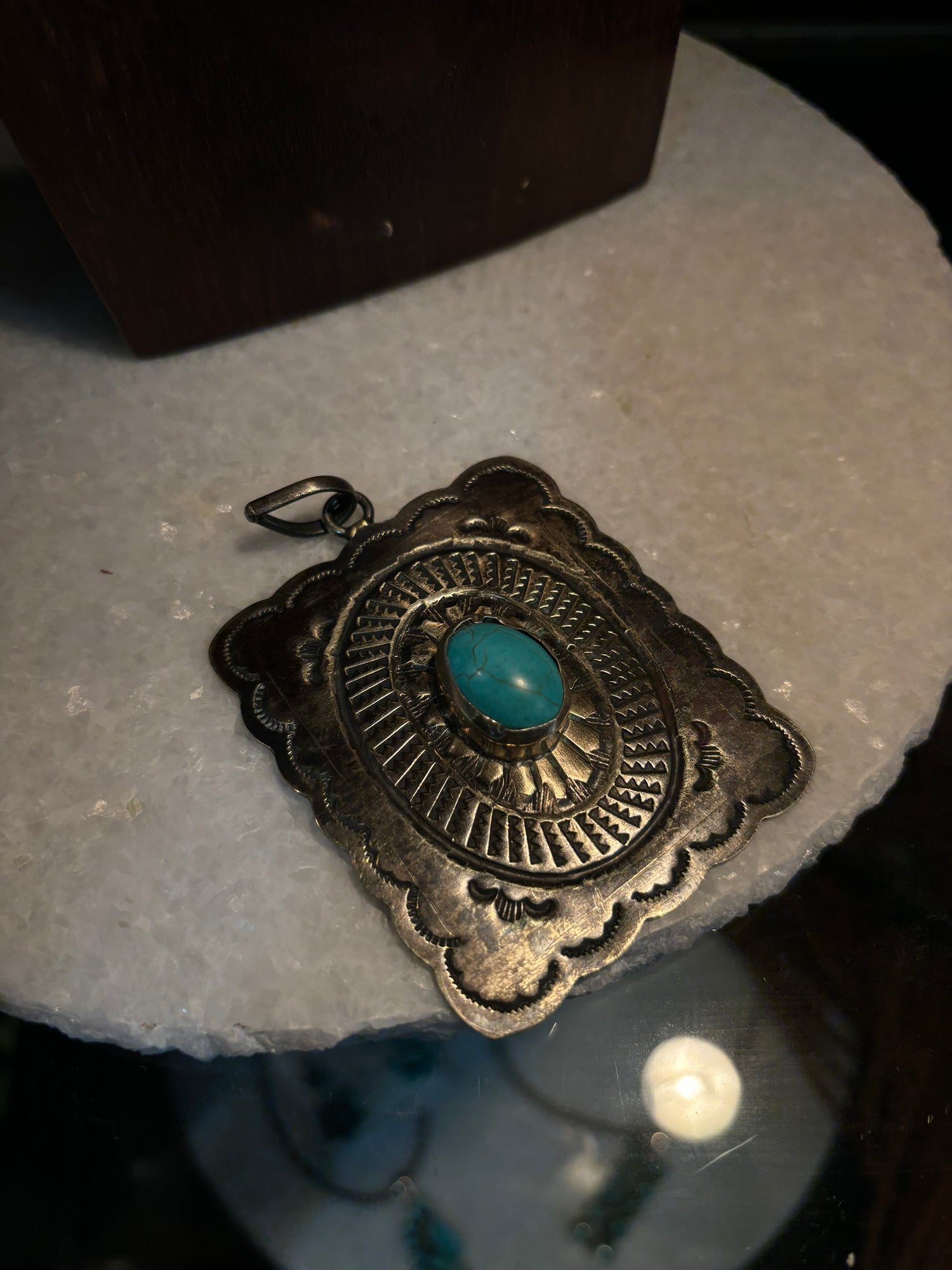 This sterling silver authentic pendant is a perfect staple piece for any outfit. Made with turquoise this pendant is sure to be a head turner!