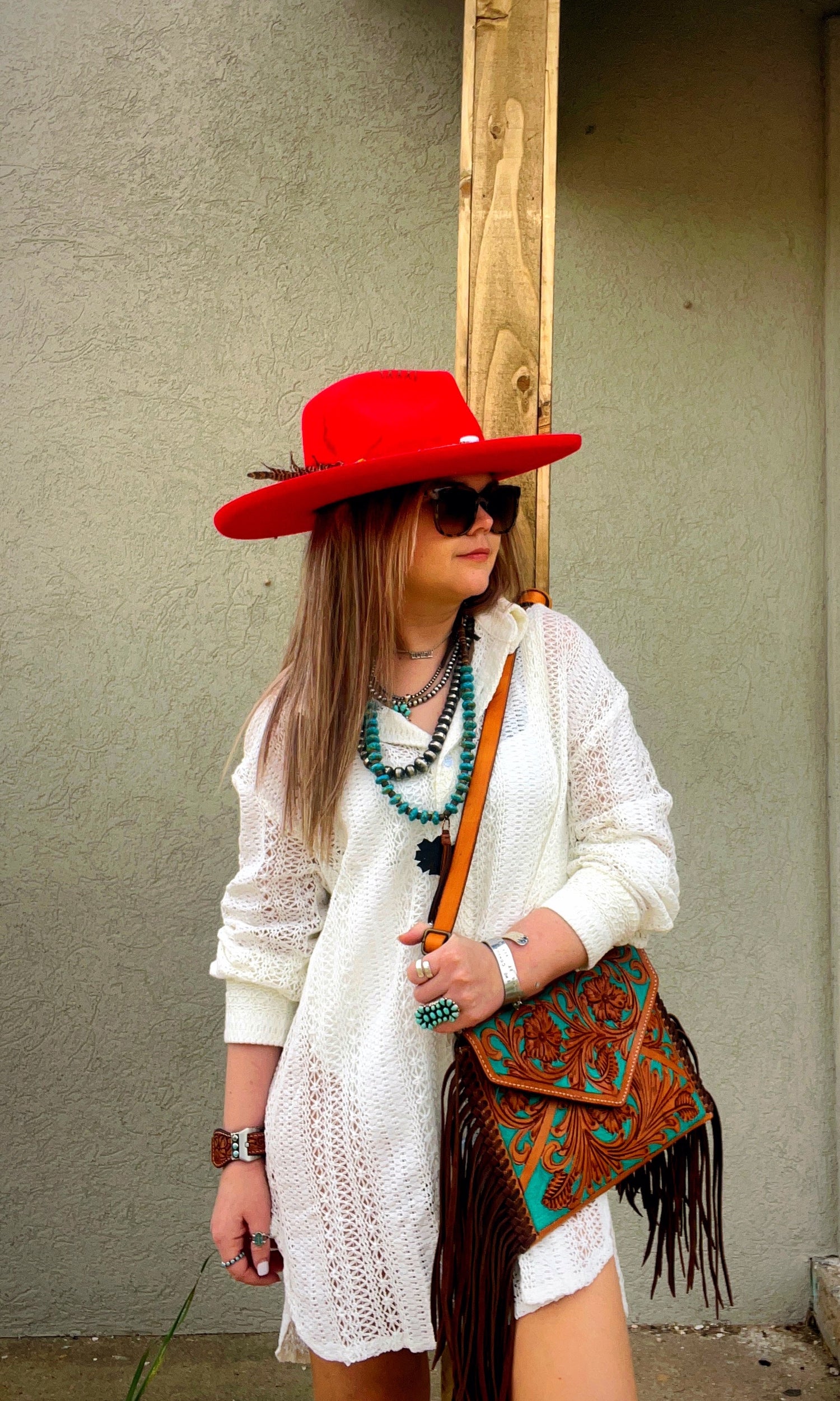 Beige Lace Crochet Collared Tunic Oversized Shirt