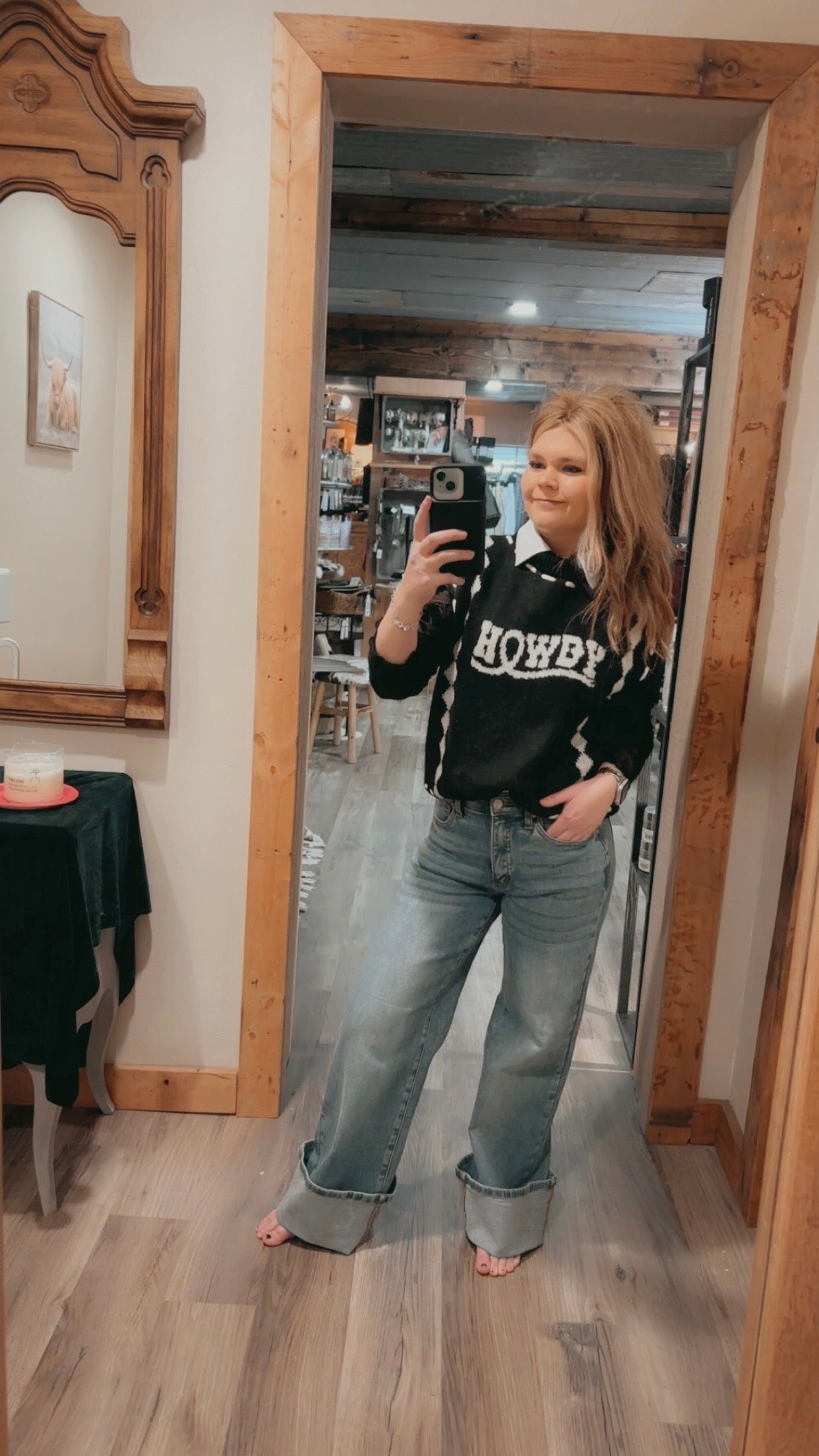 Bring bold cowgirl energy to your boutique with this standout “HOH” Western Knit Sweater Vest from Lucky & Blessed. This sleeveless black knit vest is crafted for the fashion-forward Western woman, featuring a cozy, tailored fit and contrast white detailing that runs along the shoulders and sides in a diamond-stitch pattern. Front and center, the standout HOH (Heart of the Herd) lettering captures the essence of Western pride, giving your customers a bold statement piece that layers effortlessly. Whether paired with vintage denim, a suede skirt, or worn solo with boots, this vest blends retro rodeo vibes with modern edge — ideal for layering throughout transitional seasons. Perfect for fall markets, rodeo weekends, or boutique shelves looking for something fierce and feminine. The soft knit construction provides comfort without sacrificing that Western grit.