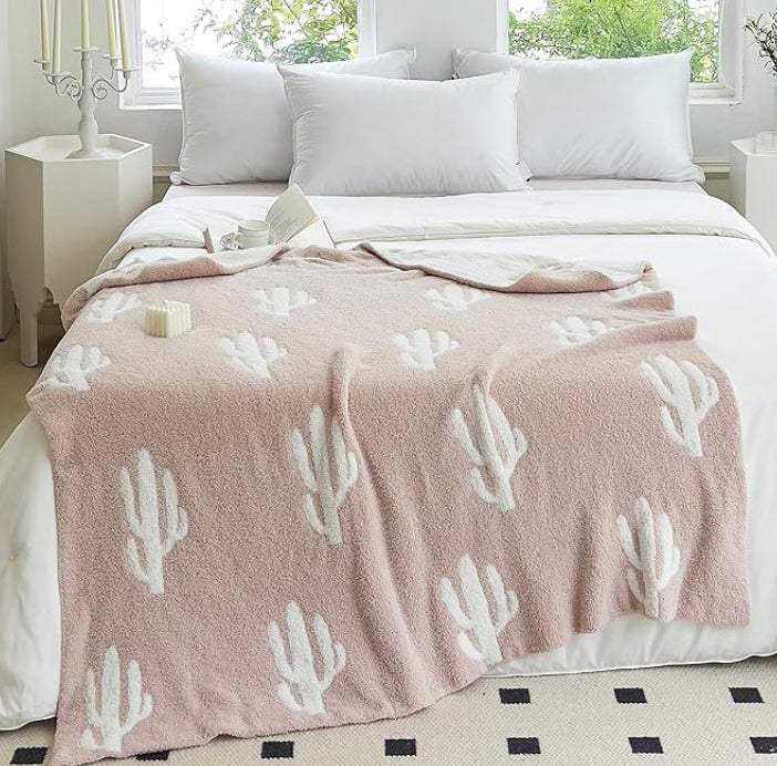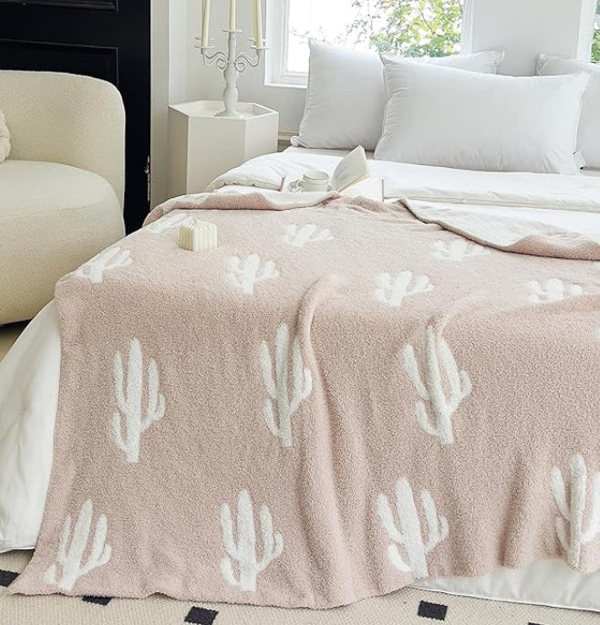 Cactus Throw Blanket Microfiber Khaki Knitted Blanket Lightweight Fluffy Fleece Blanket(Beige)