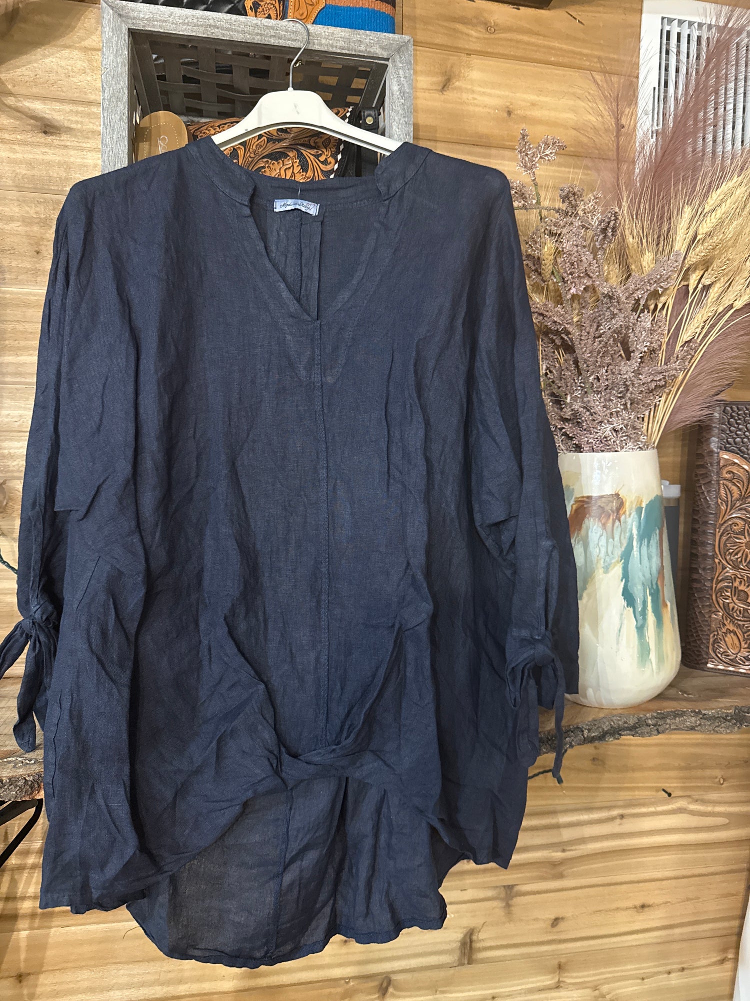 Catherine Lillywhite LINEN Sleeved Black Tunic TOP Italy Collection O/S fits most