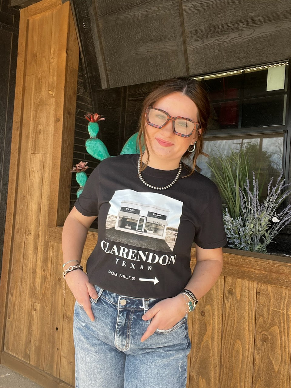 This adorable Prada store front is printed on a comfort color tee. The Prada store front is located in Marfa, Tx by itself.