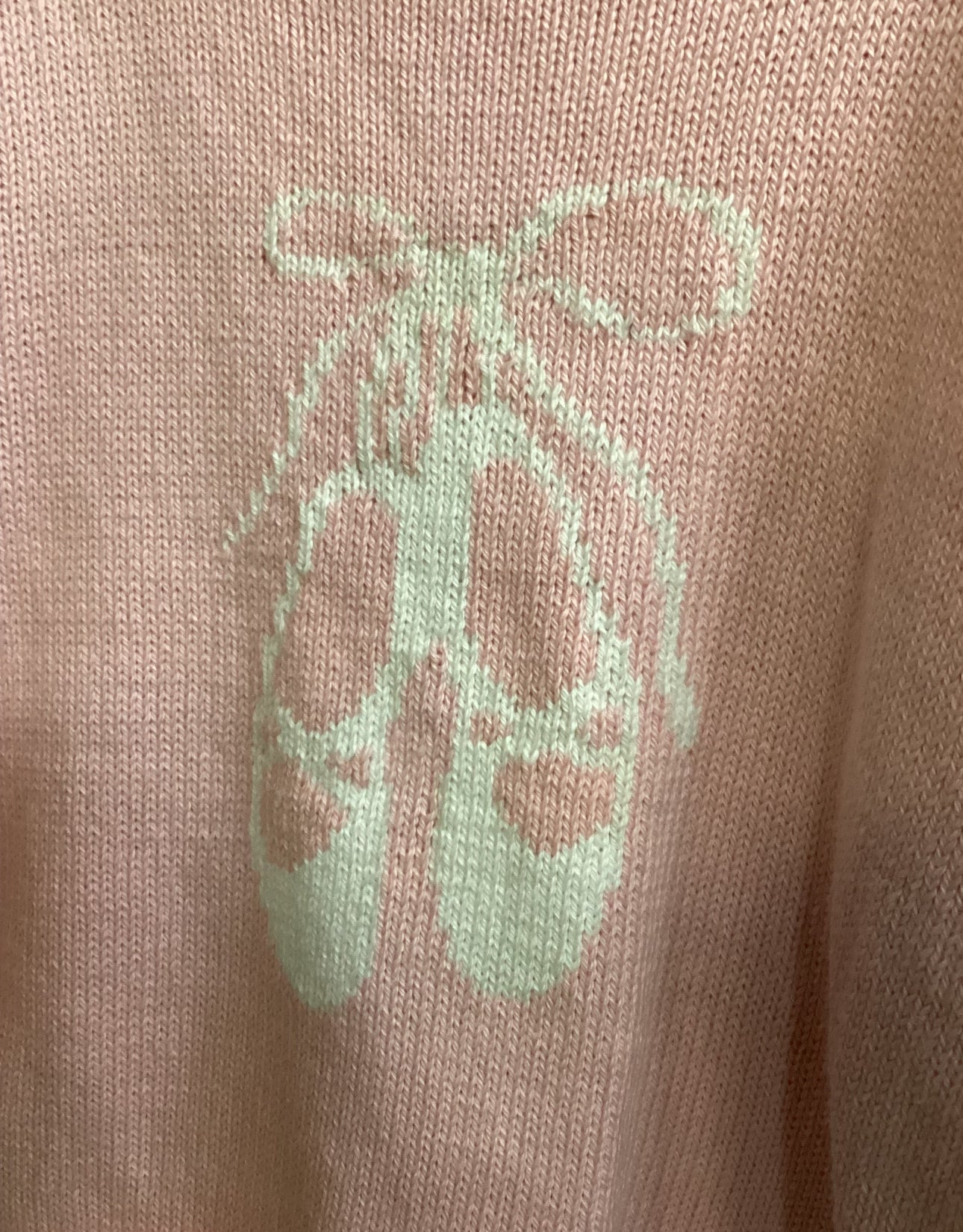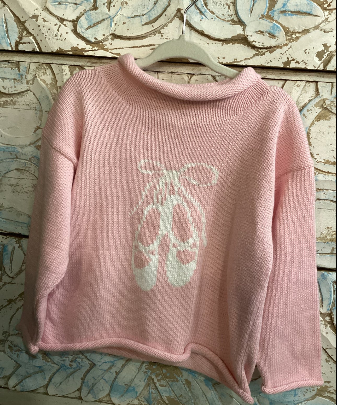 Help her stay cute and cozy in this Rollneck New Lt. Pink Sweater, featuring white ballet slippers.