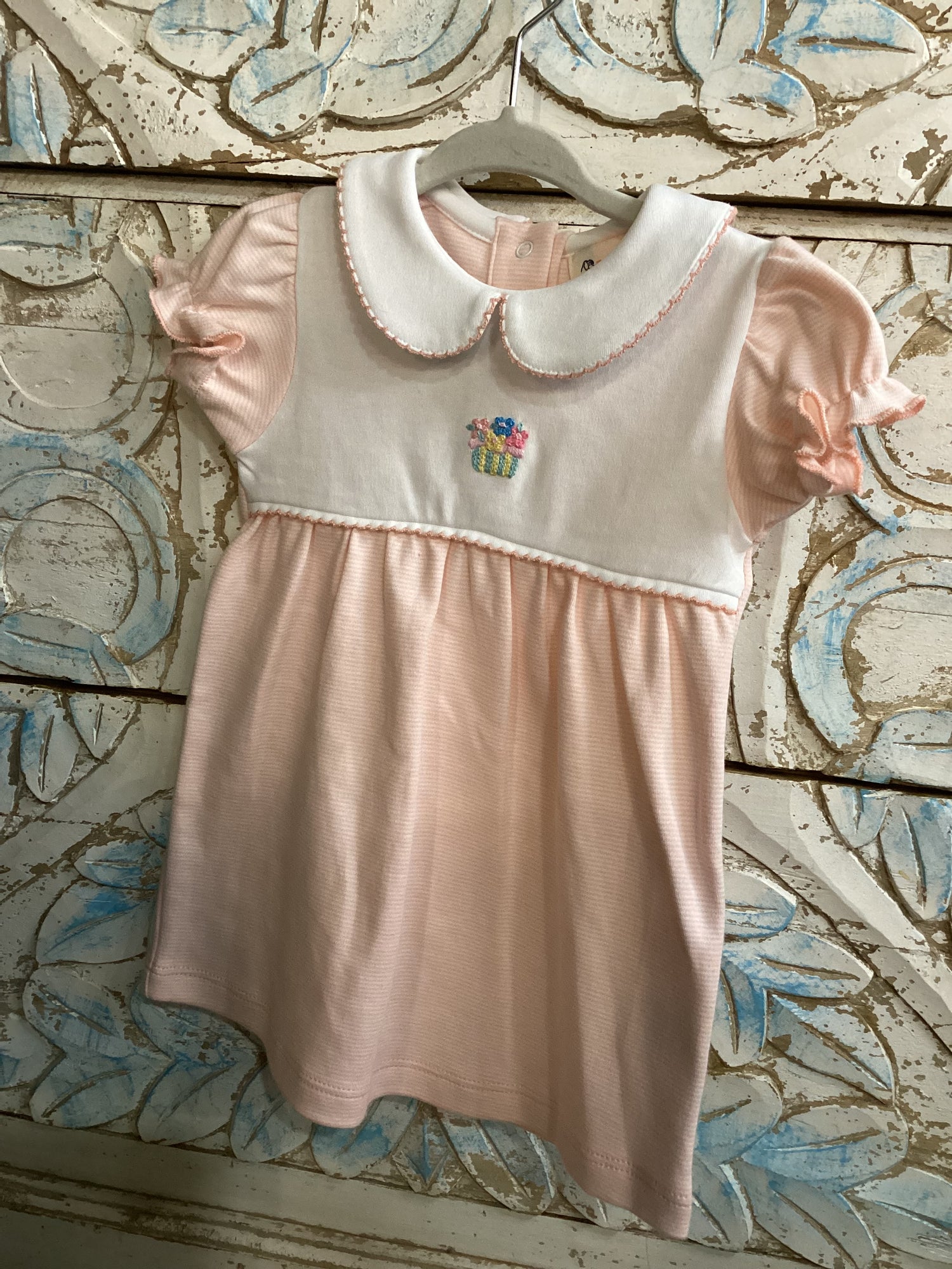 Made from luxurious Pima cotton, this dress features a delicate peter pan collar and adorable short sleeves. But the real highlight? Mini flower embroidery that adds a touch of spring to the dress.