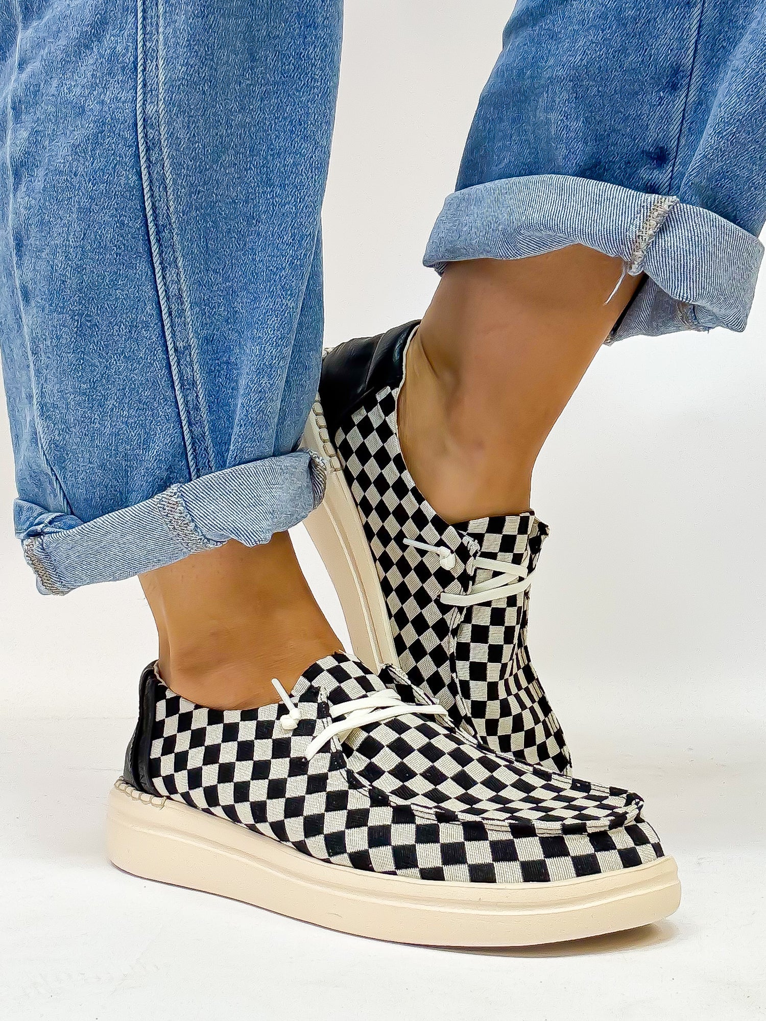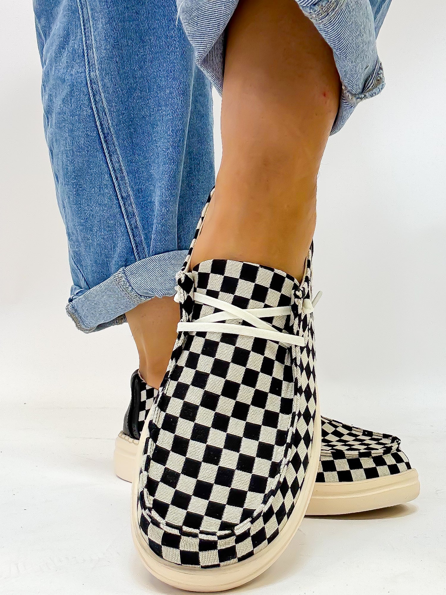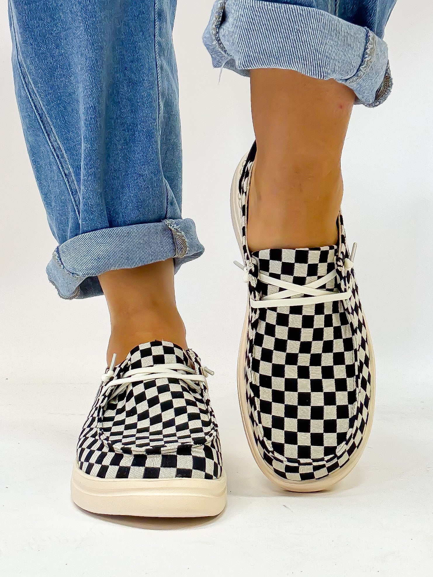We’ve got an updated version of our best selling kayak shoe, and this trendy black and white checkered print has us swooning! Perfect for a comfy fit with all your spring and summer outfits.
