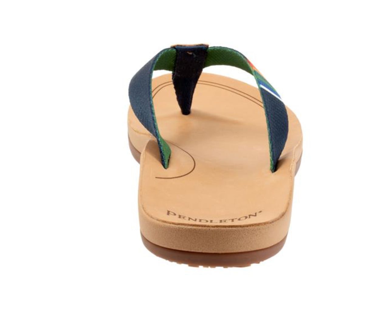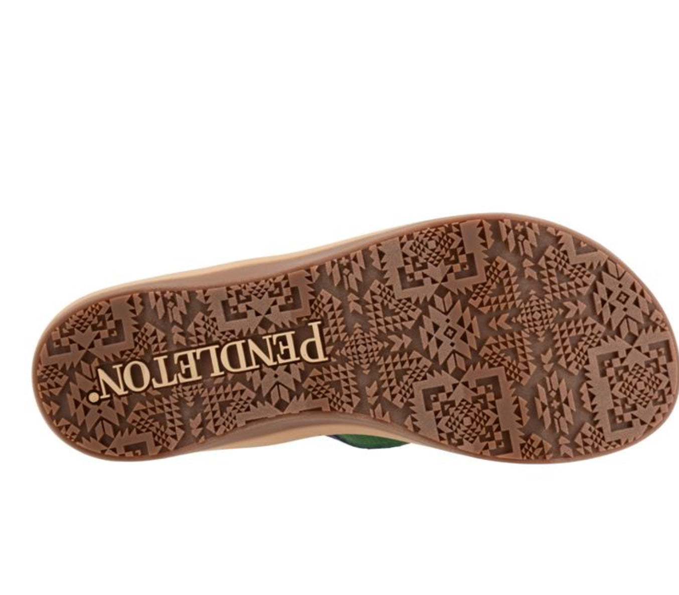 These easy-on thongs have colorful fabric uppers with Pendleton patterns. A rubber sole provides traction and the leather-lined insole with arch support provides all-day comfort and support.