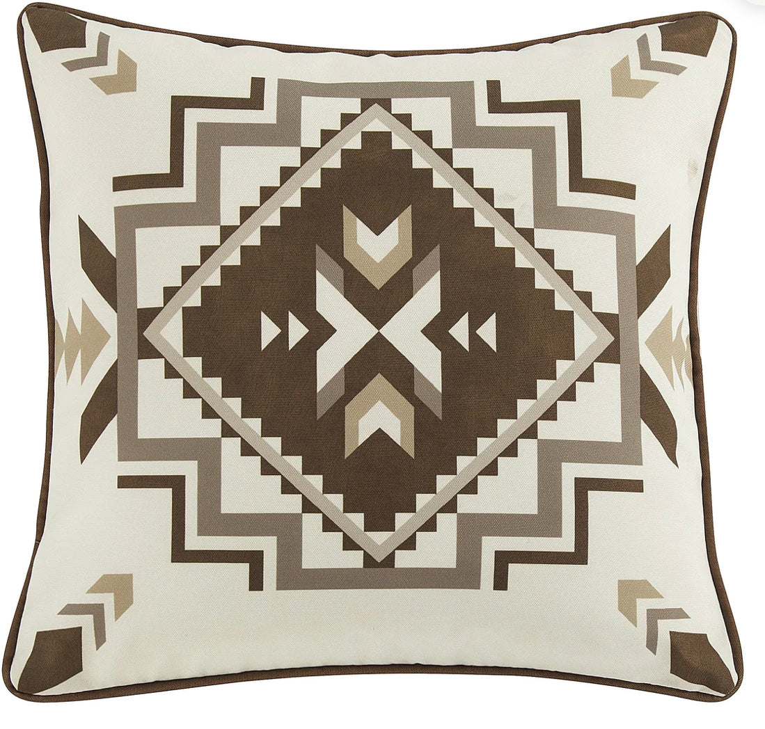 With striking geometric themes and a neutral palette, our Dakota Indoor/Outdoor Pillow brings a calming Southwestern charm to your home. Echoing Native American design, Dakota showcases varied horizontal stripes, arrow motifs, and diamond patterns in earth-tones of taupe, brown, and tan. Complete a rustic or Southwestern-inspired bedding ensemble when you coordinate with other pieces in our Dakota Collection, such as our quilt set, shower curtain, bathroom accessories, and more..