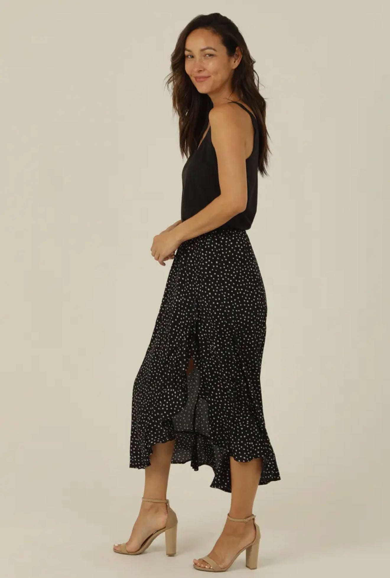 Experience the unique blend of casual aesthetics and vintage inspiration with the Elastic Waist Ruffle Slit Skirt by Nostalgia. This junior fit skirt is perfect for resort or vacation occasions, providing a versatile and instantly wearable piece to your wardrobe. Its elastic waist ensures comfort, while the ruffle slit adds a touch of bohemian charm, reflecting the eclectic and chic spirit of our brand. Embrace your strength and beauty with this sophisticated yet practical skirt.