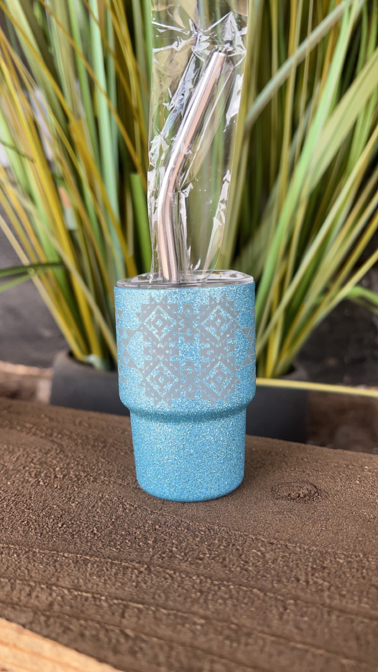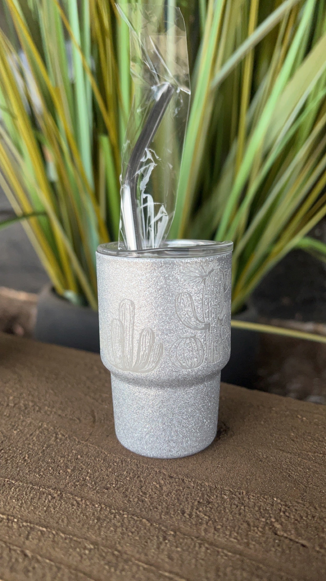3 oz Etched Glitter Shot Glass Tumbler Multiple Colors