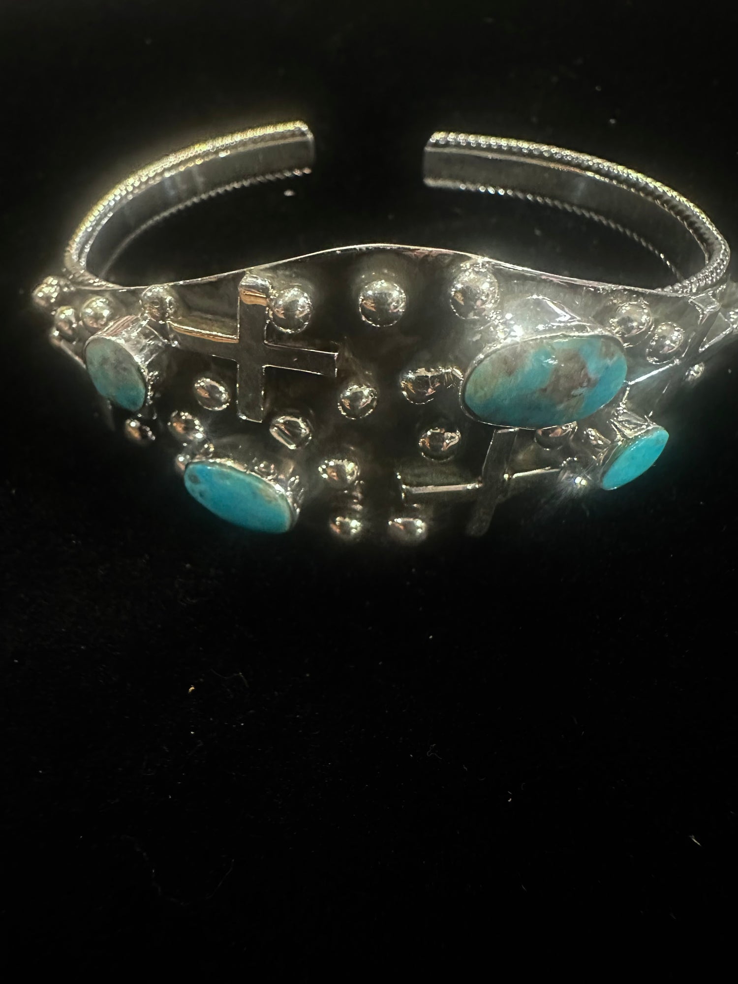 Gregg Yazzie Navajo Handmade SS Kingman Turq Bracelet