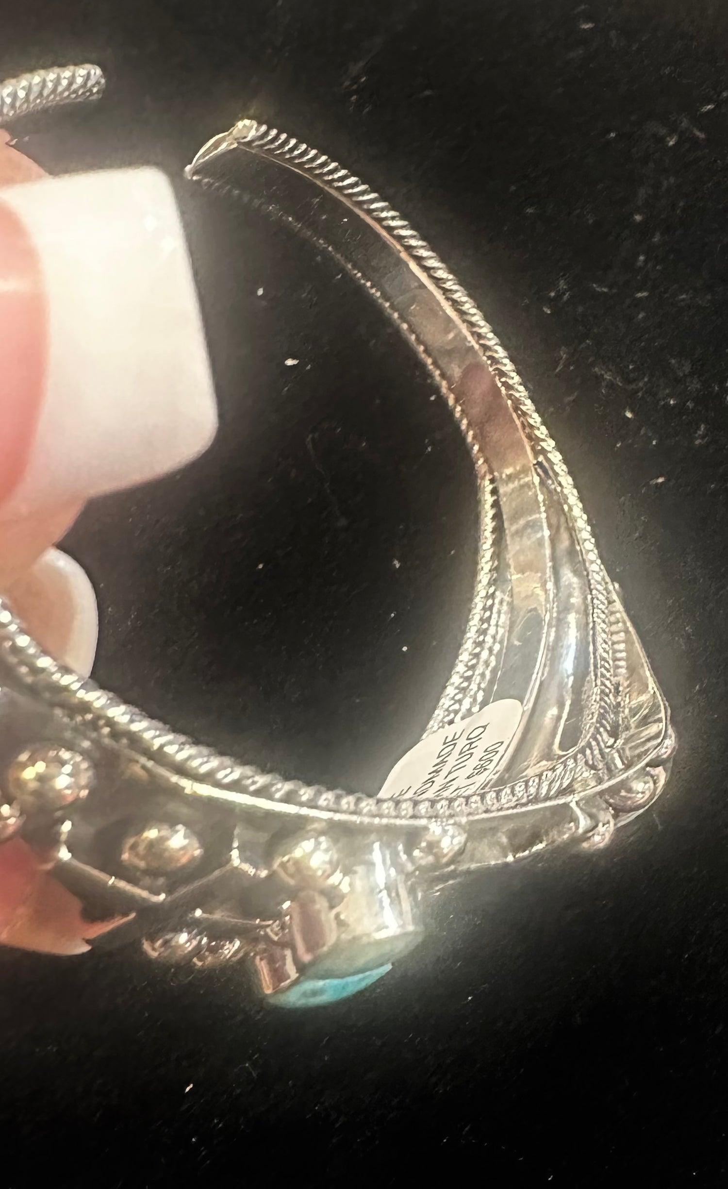 Gregg Yazzie Navajo Handmade SS Kingman Turqoise Bracelet 2 1/2” across with 1” opening