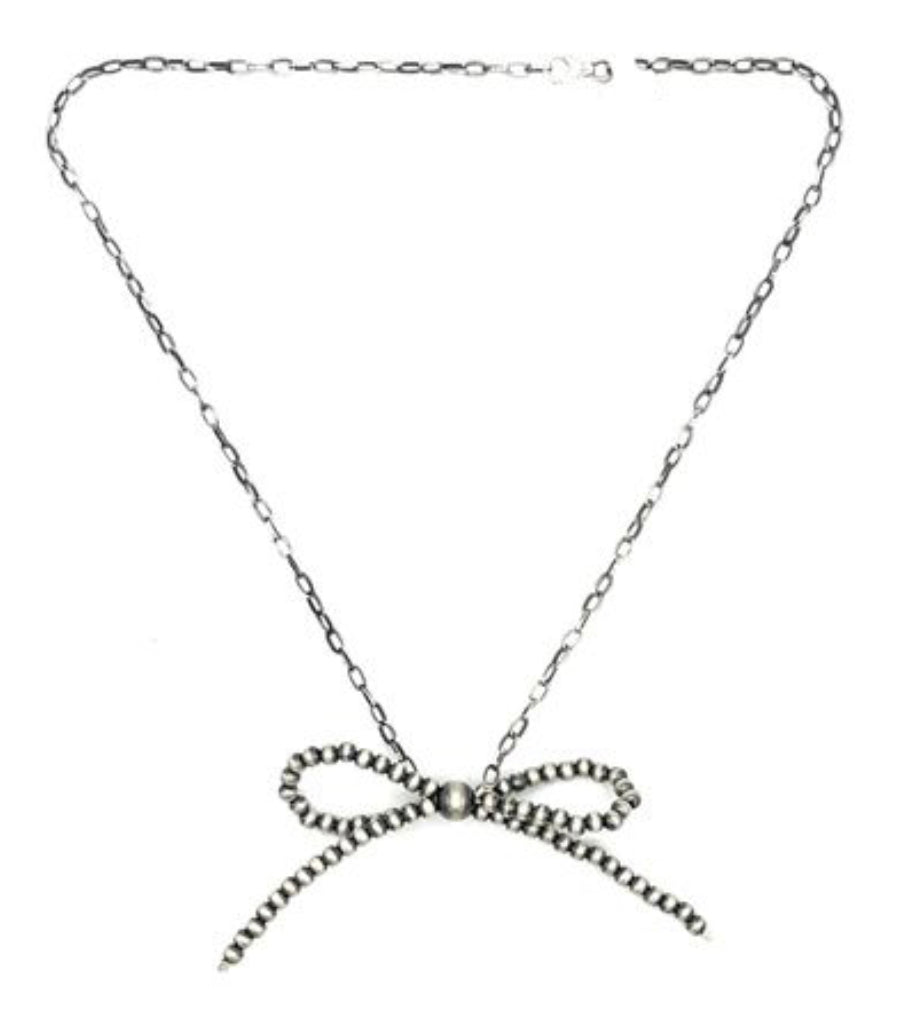 Handstrung 16 Inch Bow Tie on Link Chain Sterling Silver Necklace