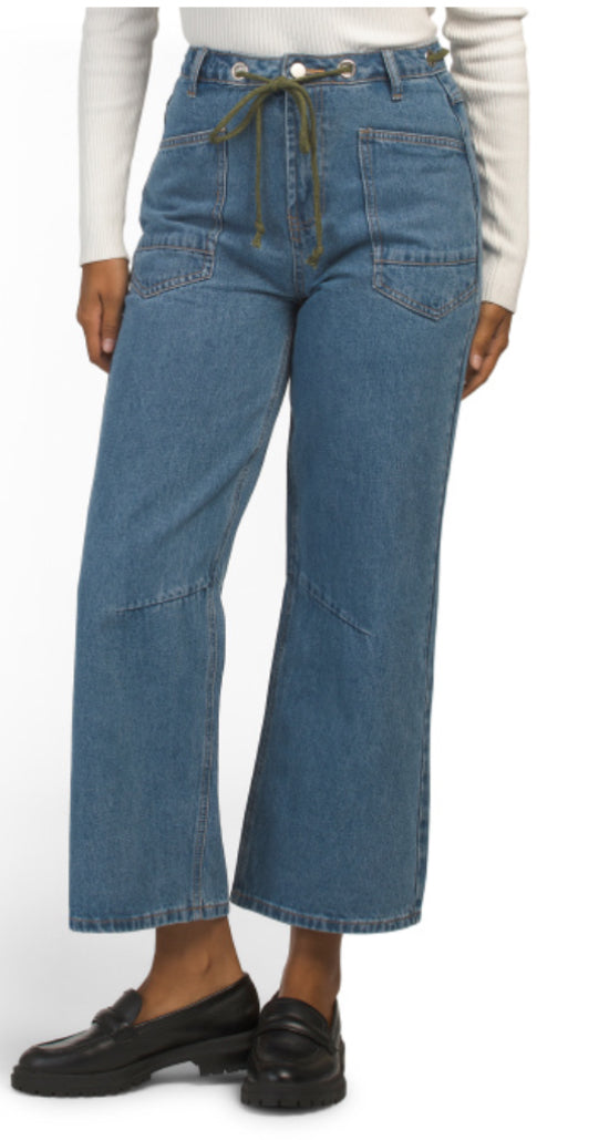 - Drawstring waist detail, contrast stitching, waist rise: 12in