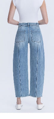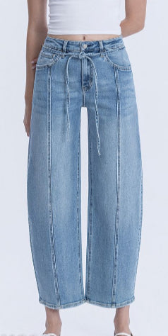 Elevate your fall wardrobe with these Lovervet Barrel Leg Waist Tie Jeans. Featuring a high-waisted fit and a fun barrel leg shape, they offer comfort and style. The waist tie adds a playful touch and customizable fit, while the seam detail running down the leg brings subtle flair. Perfect for cozy days and crisp adventures, these jeans are your go-to for effortless seasonal charm.