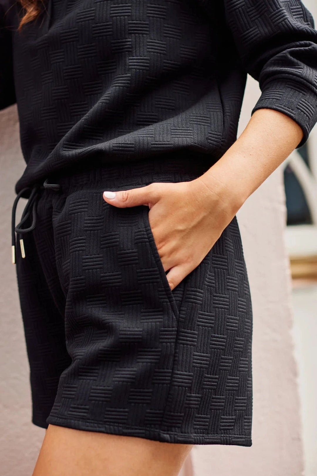 Embrace effortless elegance with the Lindsay Jacquard Shorts. Made from an exclusive crosshatch jacquard fabric. The drawstring shorts with gold end caps ensure a comfortable and customizable fit. Ideal for both lounging and casual outings,