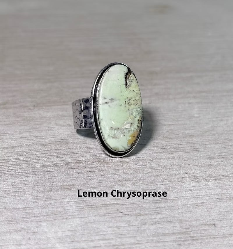 Kashi Semiprecious Large Stone Adjustable Rings Lemon Chrysoprase