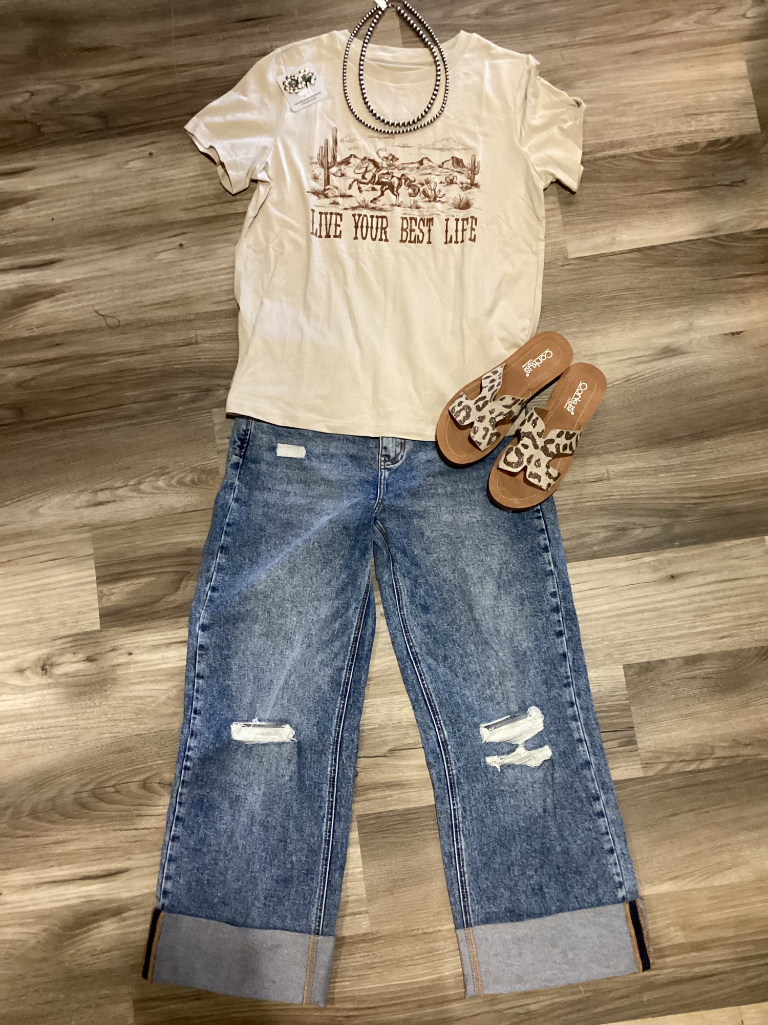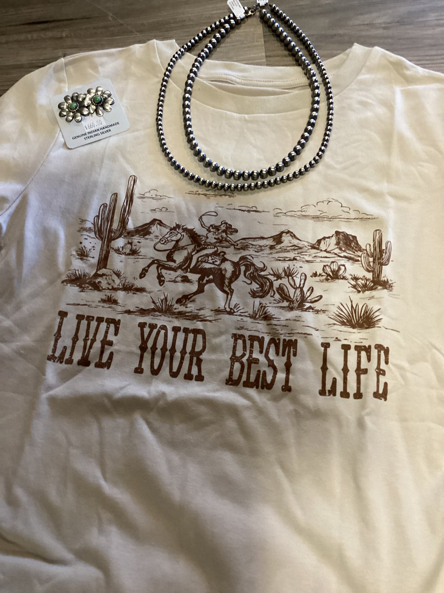 Stand out in style with this “Live Your Best Life Cowboy Tee”, designed for those who aren't afraid to express themselves. Made from soft, breathable fabric, this t-shirt offers both comfort and durability, perfect for everyday wear.