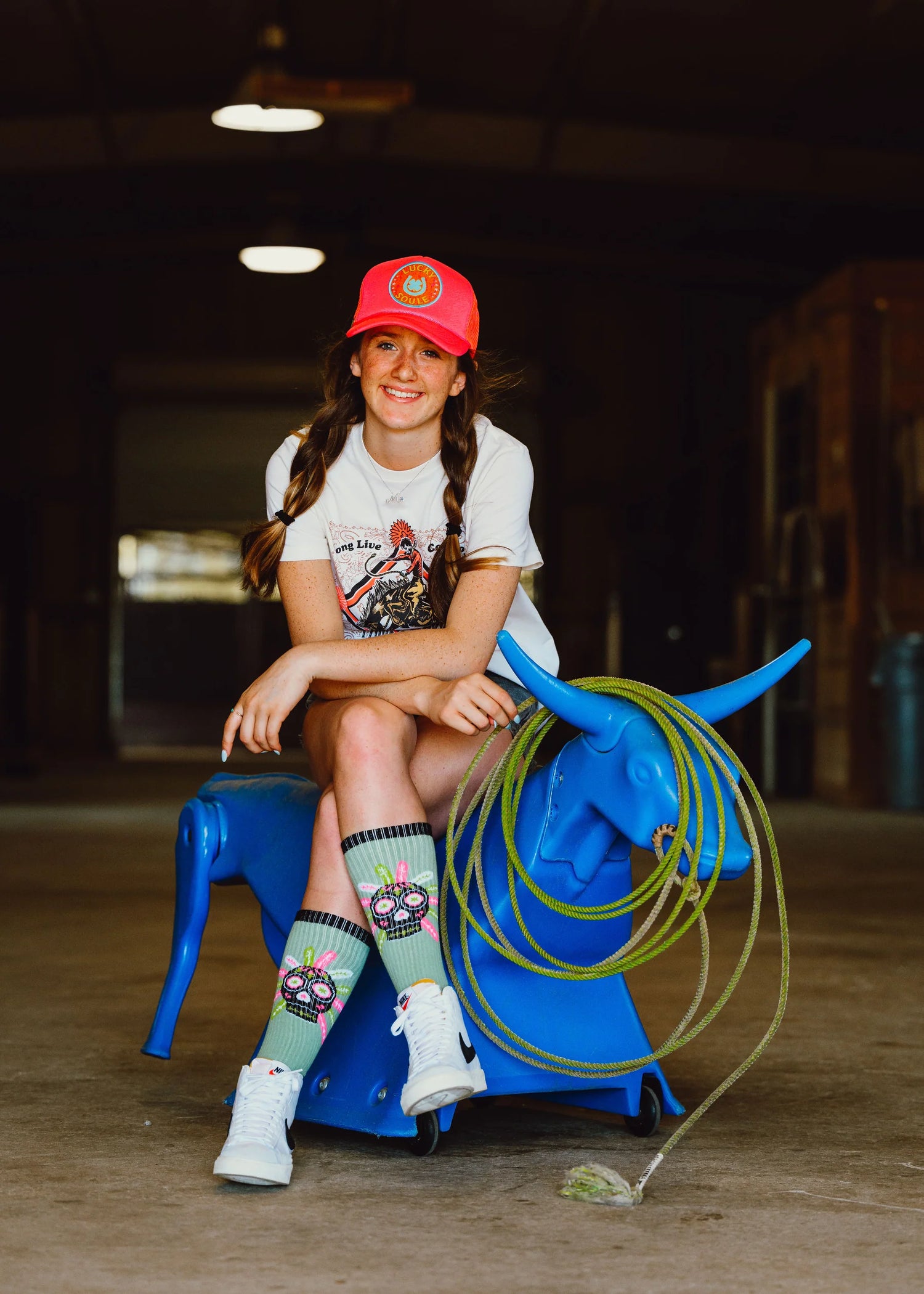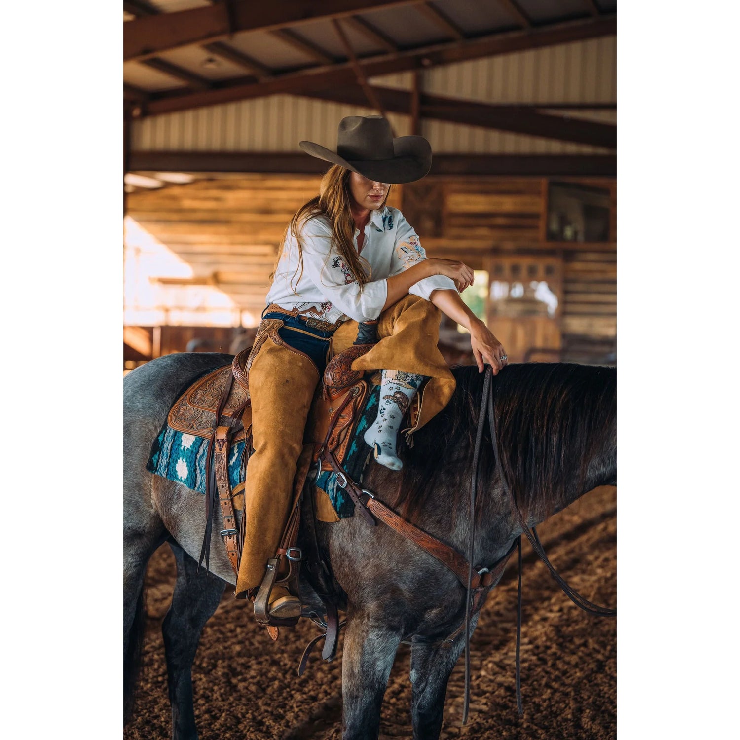 Under the creative vision of head cowgirl Lorinda Van Newkirk, Lucky Chuck® Performance Socks deliver on both style and functionality. These riding essentials are tall enough to protect your calves, stay up all day, and never cut off circulation. Plus, they soften with every wash without wearing out—giving you even more chances to rock your lucky socks every day.