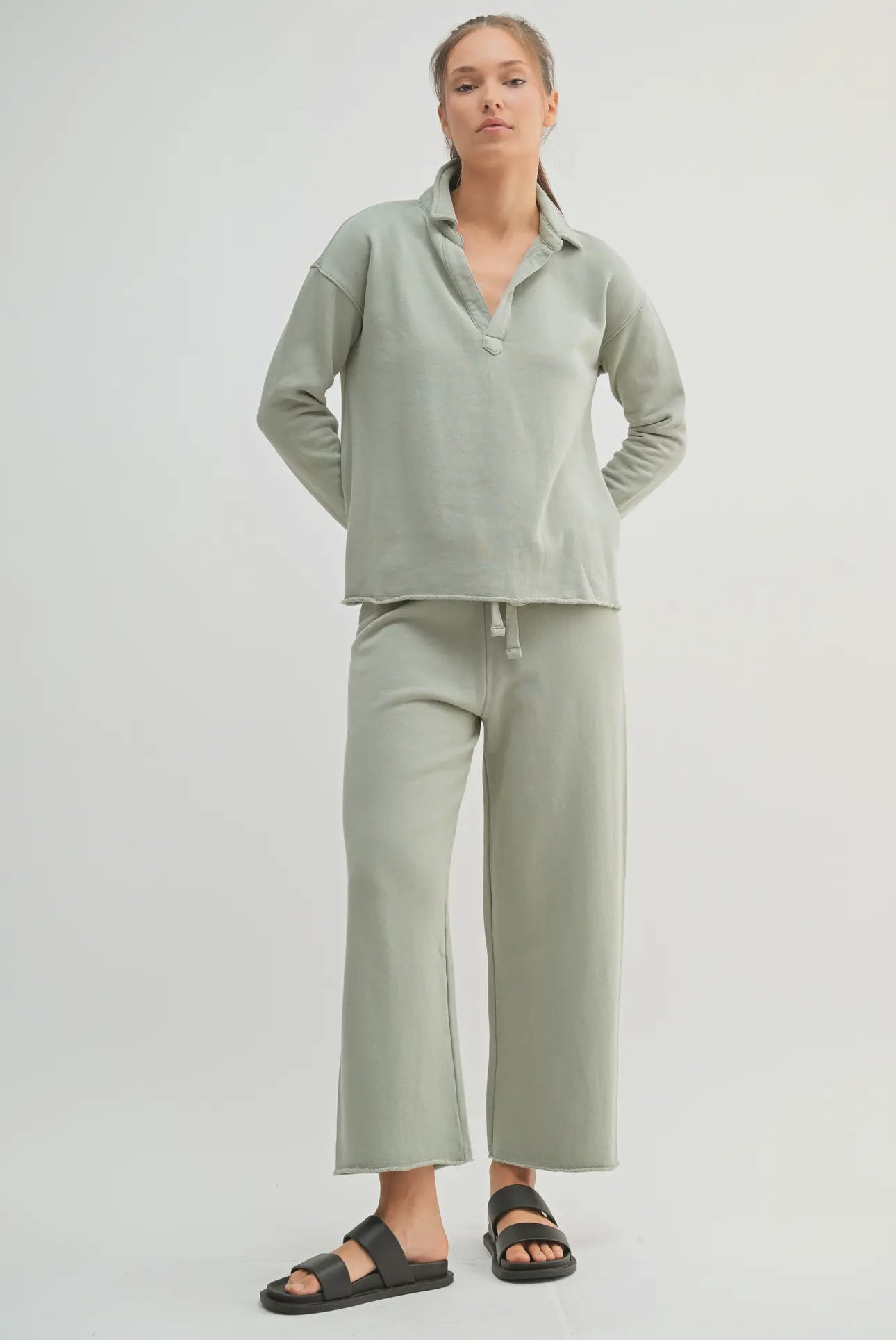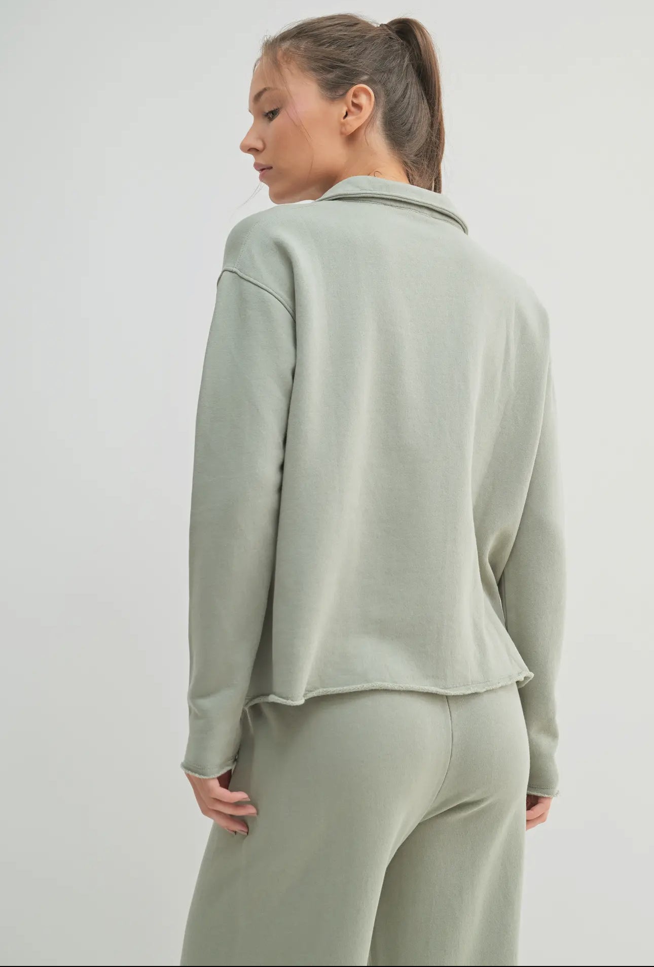 Henley-style long sleeve with a V-neck and raw-edge hem for a vintage look. Perfect for brunch or lunch, this versatile tee pairs effortlessly with denim for a casual yet polished vibe!