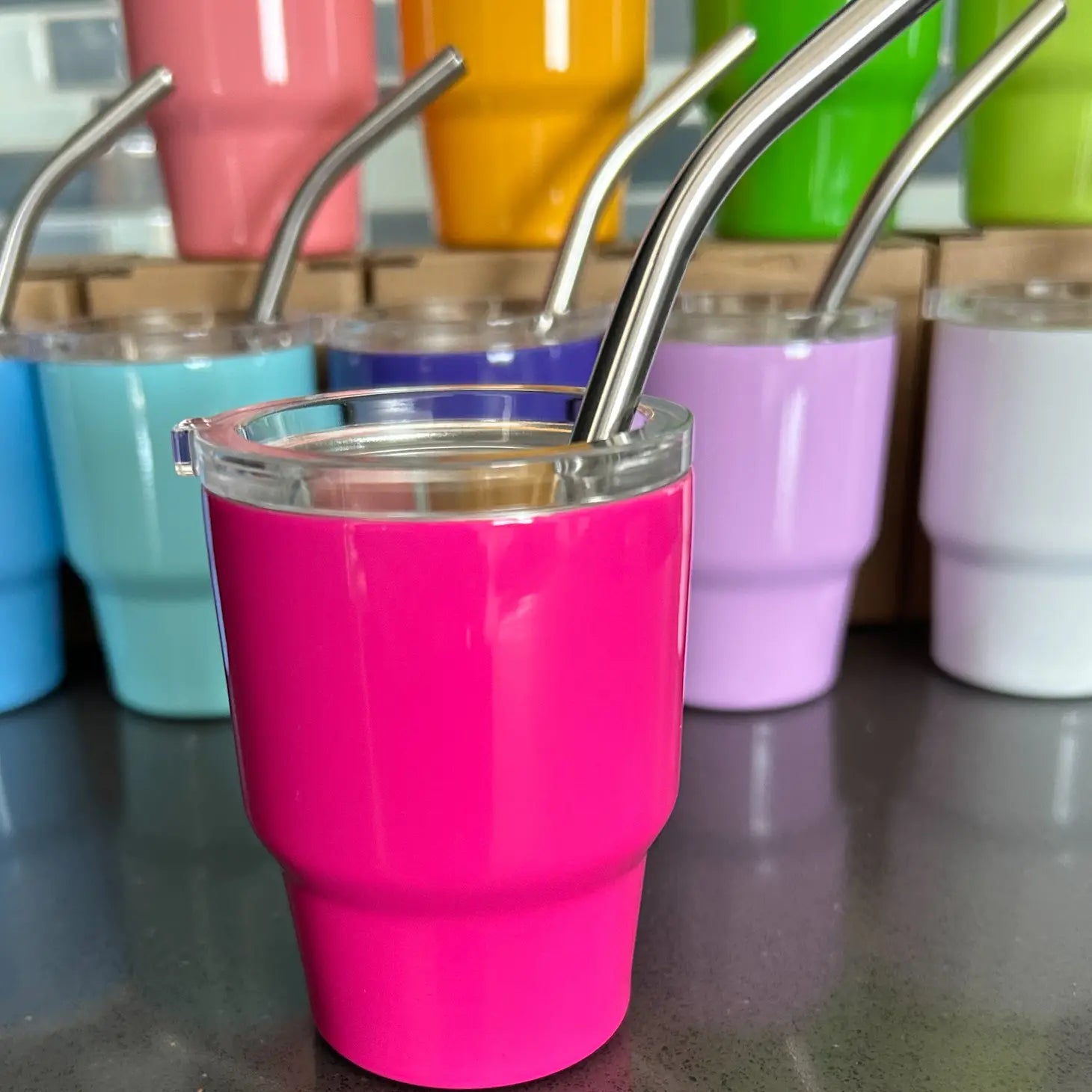 Stay refreshed with this 3oz Mini Tumbler. Its small size is perfect for single-serve drinks, holding up to 3 ounces of your favorite drink on the go. Durable stainless steel construction ensures your drink stays warm or cold, with no worries about breaking. Enjoy your favorite beverage effortlessly!