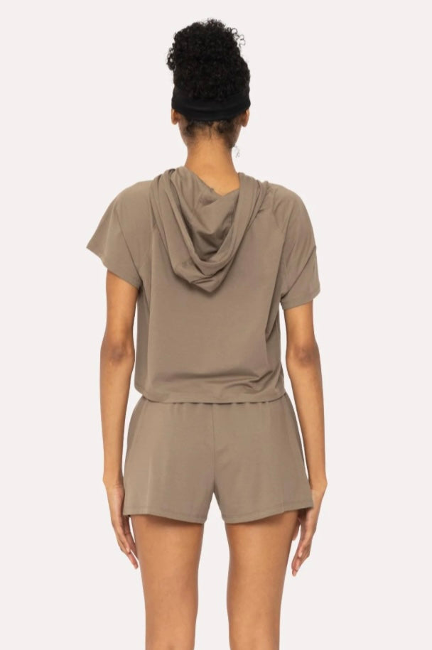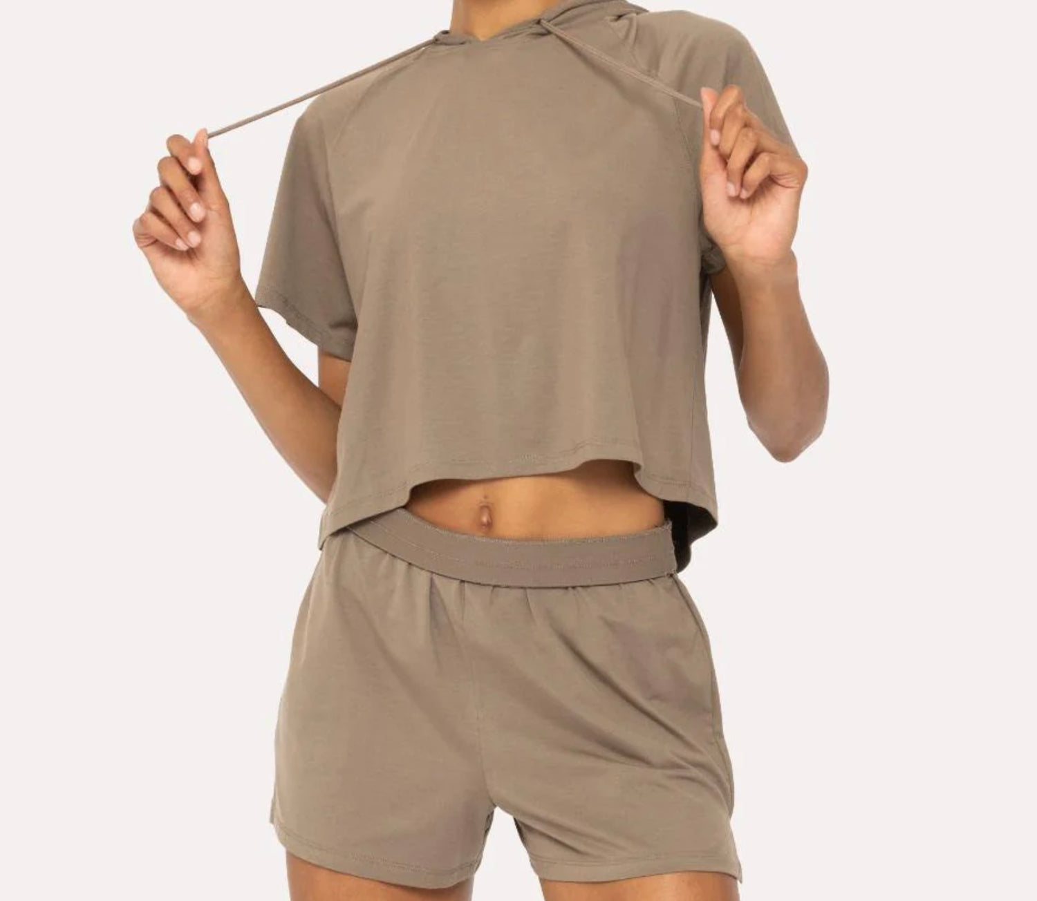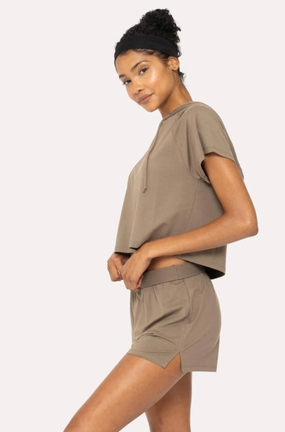 Featuring raglan sleeves, this hoodie tee adds a sporty touch to your wardrobe. Whether you're heading out for a casual outing or lounging at home, its relaxed fit and athletic-inspired design cater to a versatile lifestyle. The adjustable drawstrings at the hood provide a customizable fit, allowing you to tailor the hoodie to your comfort preferences.