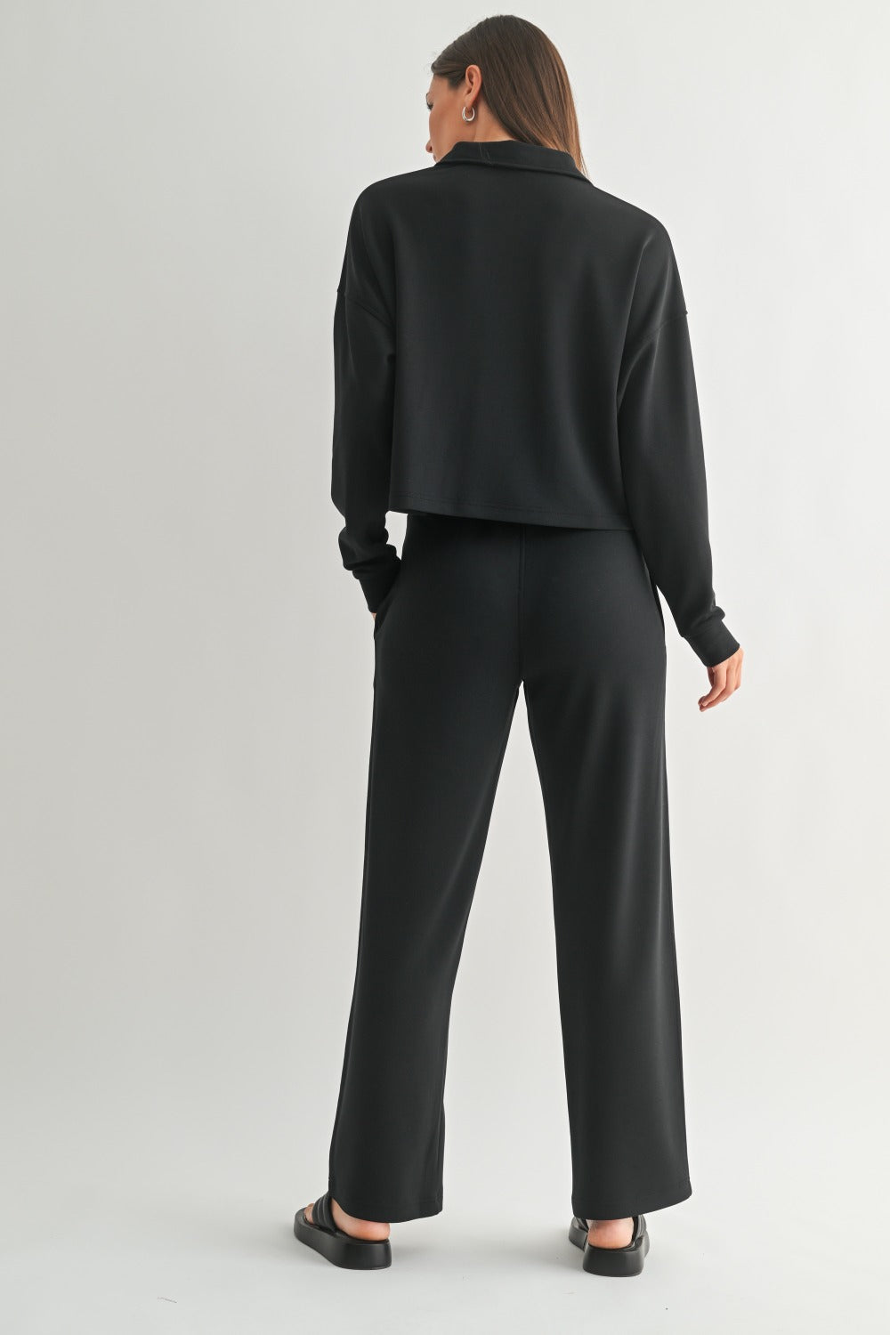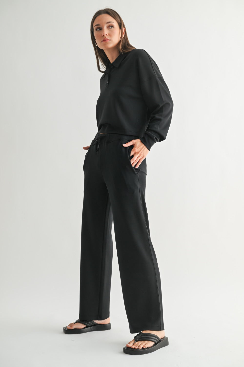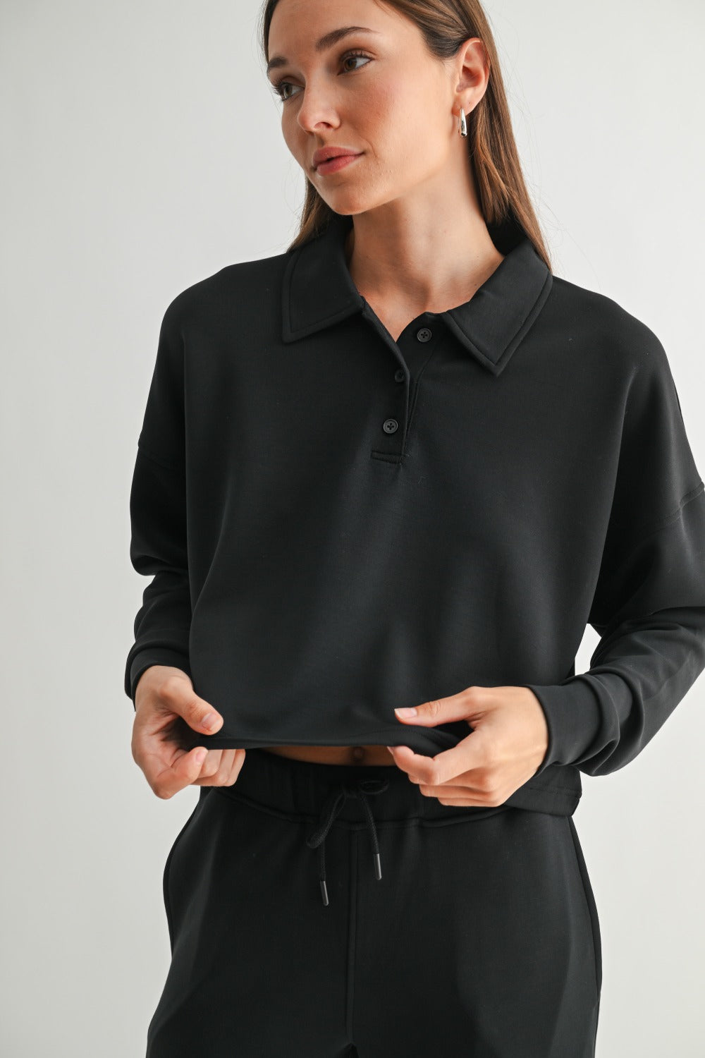 Elevated ease, from top to toe. The Laguna Luxe Set is crafted from our buttery-soft, lightweight scuba fabric for all-day comfort with a polished feel. The long sleeve top features a half-button collar, relaxed drop shoulders, and an easy drape that pairs effortlessly with the coordinating 29.5" inseam pants. With side pockets and a drawstring waistband, this set is made for movement, lounging, or layering up in style.