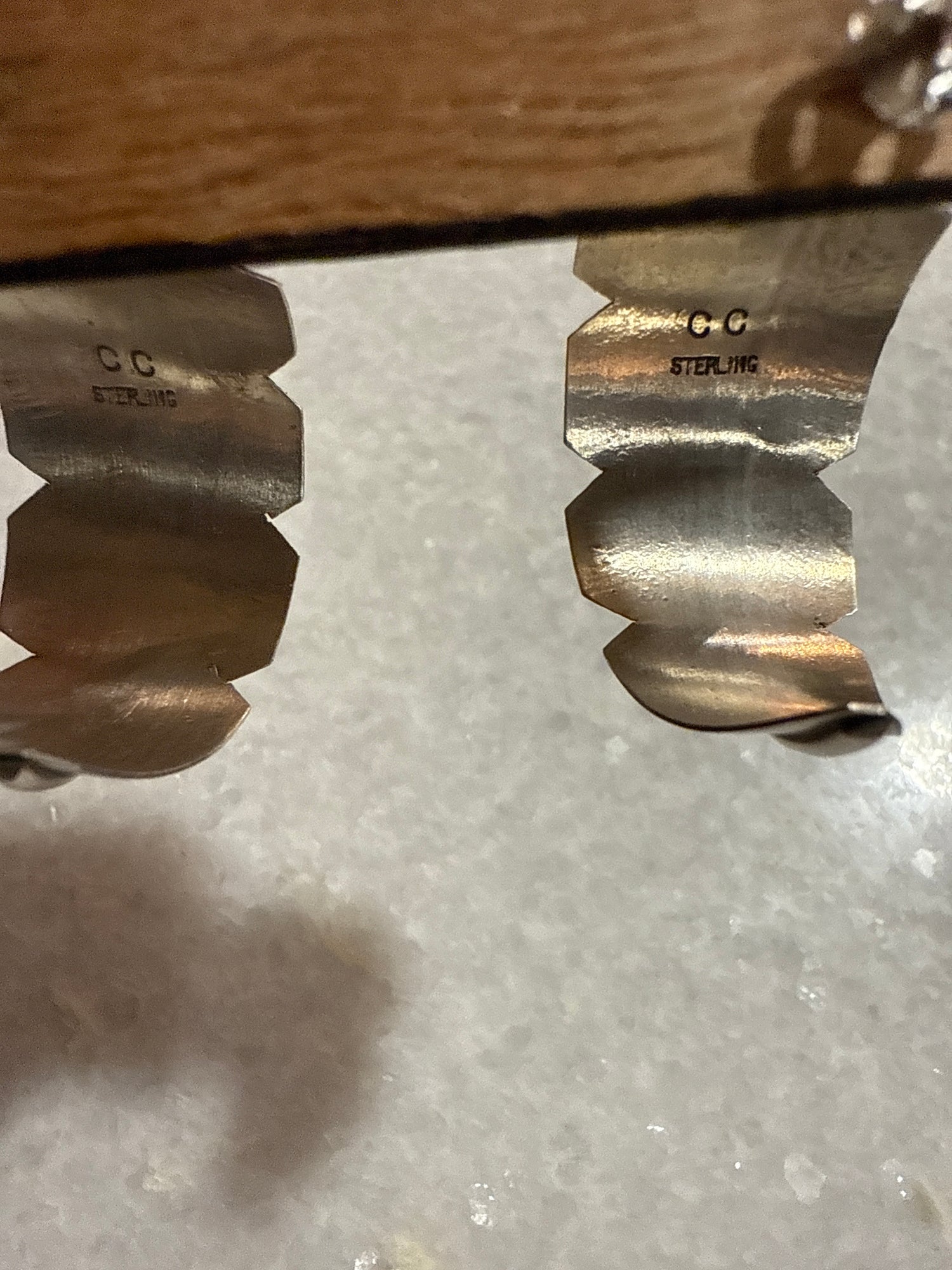 Authentic Navajo Handmade Marked CC Sterling Silver Feather Hoop