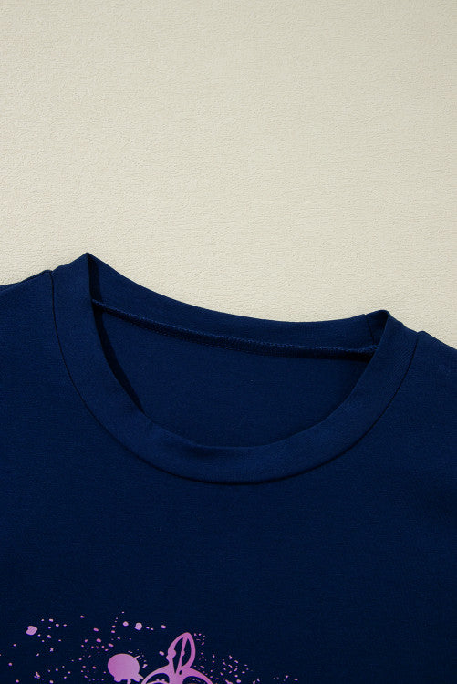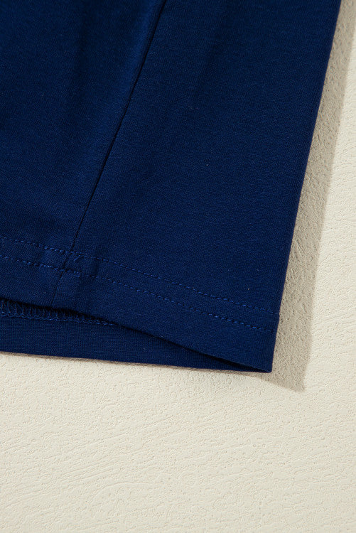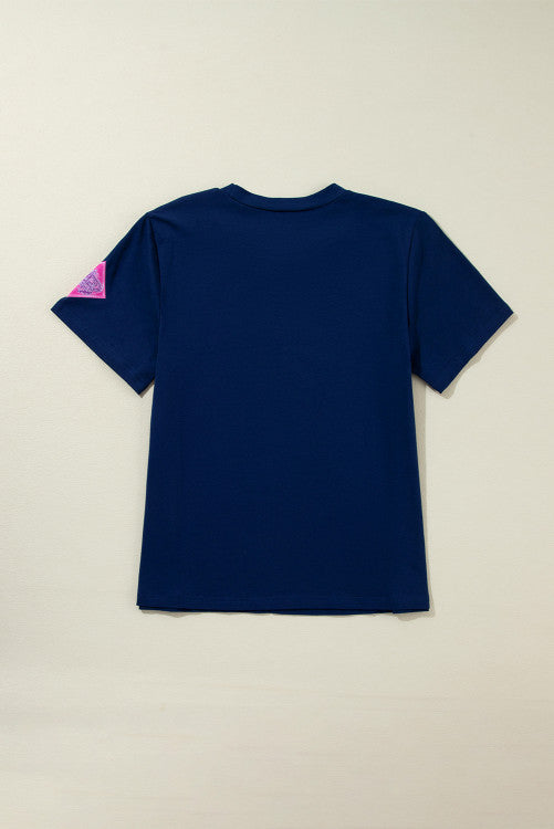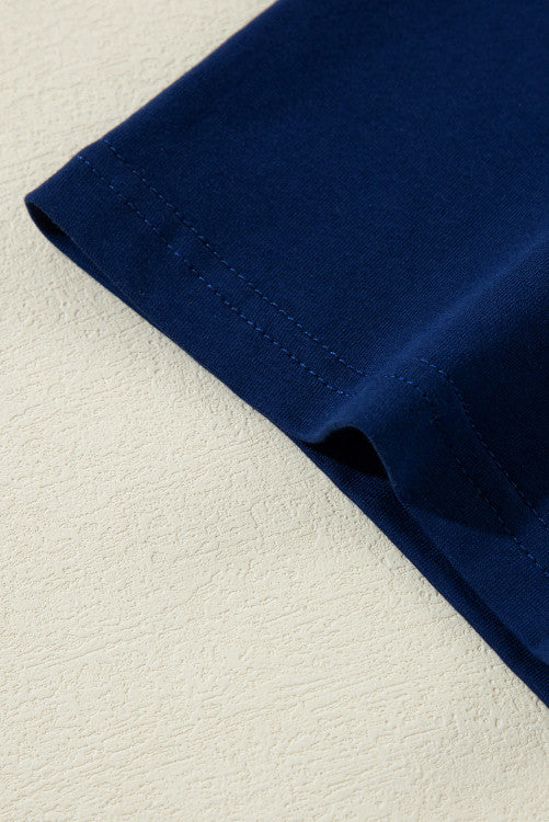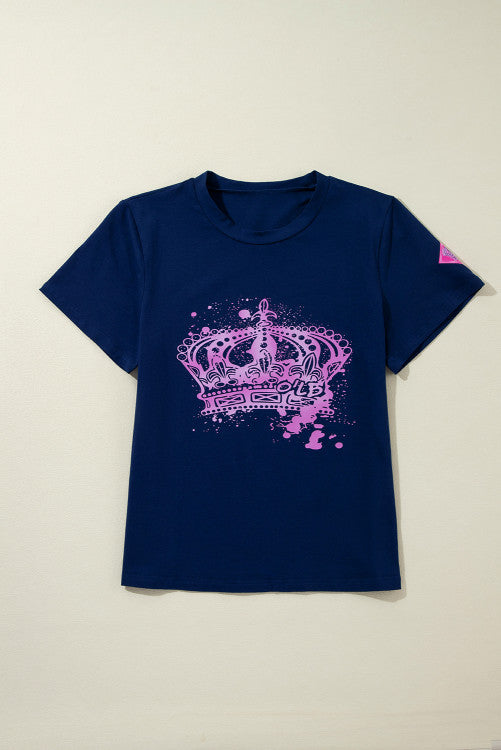 Navy Blue Crown Graphic Crew Neck T Shirt