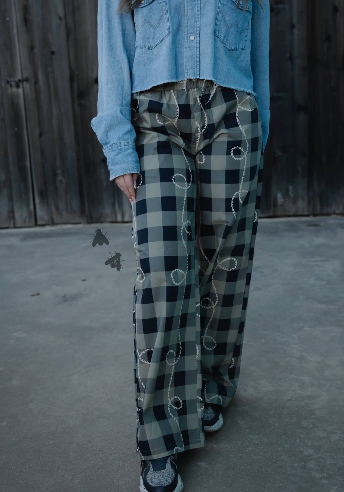 we bring you the OFF THA TRACK *ROPEY GINGHAM. These lounge sweatpants/joggers are a key part of our women's sleepwear range. Our brand stands for original, hand-drawn designs, and this product is no exception. With a nod to Western influences, these joggers offer a unique blend of styles. Join our family and stay fly with 2 Fly Co!