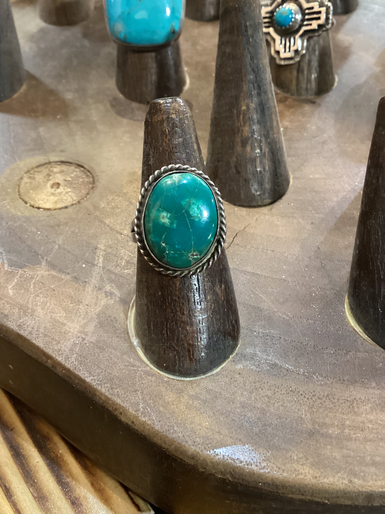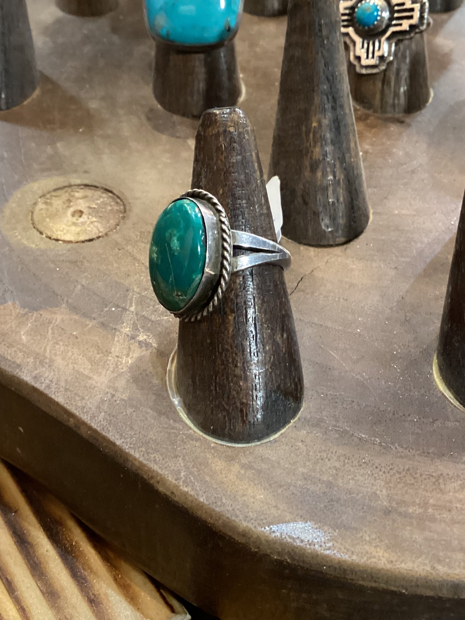 The dark green turquoise stone in this ring is so unique! Size 5.5.