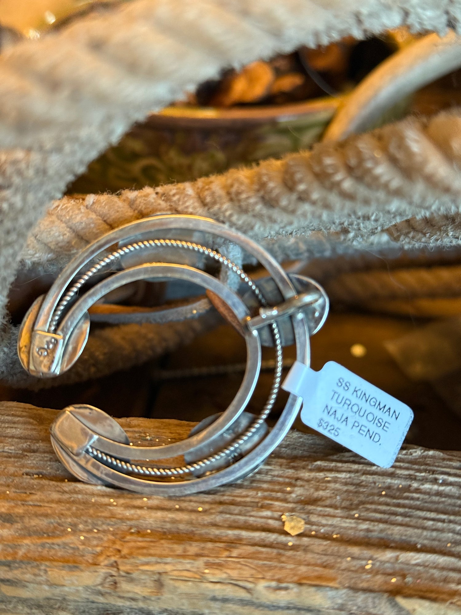 Phil Garcia Navajo HandMade Naja Kingman Turquoise .925 Pendant with hook