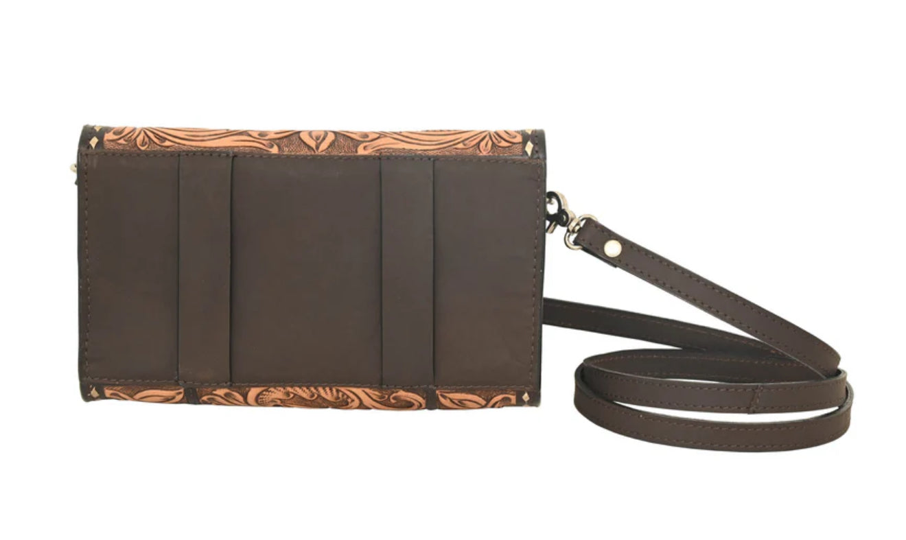 The Rafter T Ranch Co. Natural Tooled Leather Waist Bag/Crossbody Purse is the ultimate accessory for anyone who needs practical storage with a touch of Western charm. Perfect for a hands free on the go experience! And when you do have a free hand, you can attach the removable crossbody strap.