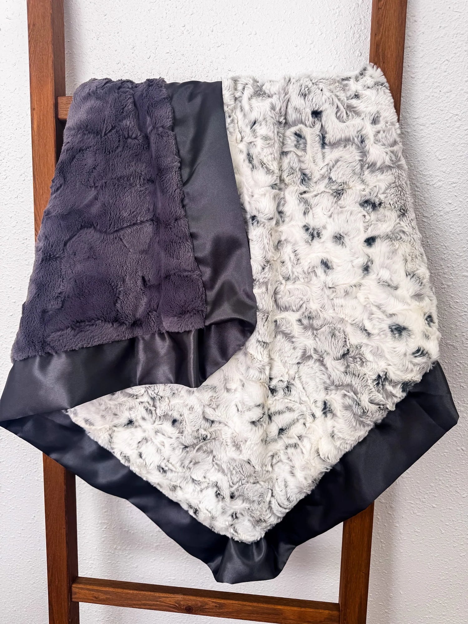 Wrap your little one in the cozy elegance of our Snowy Owl Luxury Baby Blanket, inspired by the soft, feathered beauty of an owl’s plumage. With a soothing blend of ivory and dark grey faux fur, this blanket is a gender-neutral favorite — perfect for baby boys or girls.