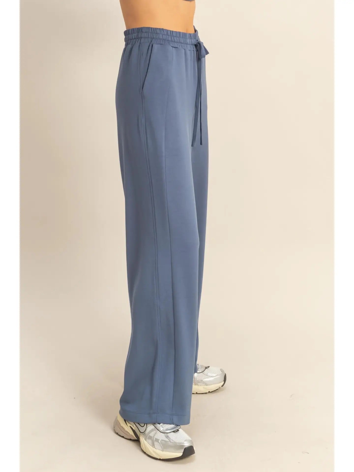 Scuba High-Waist Wide-Leg Drawstring Sweatpants