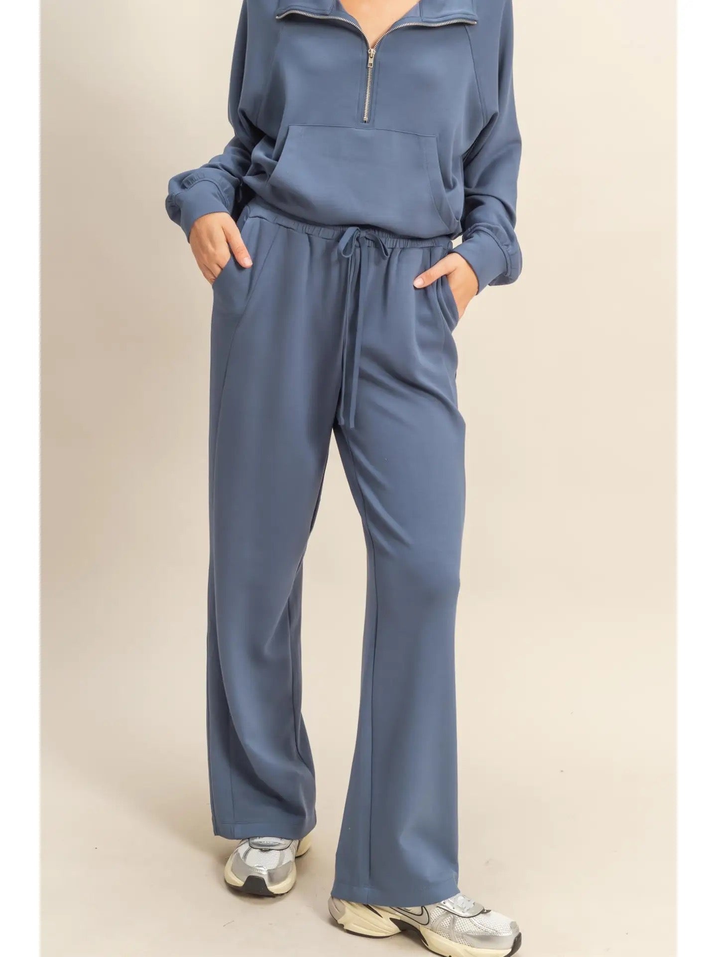 Experience Ultimate Comfort And Style With These Wide-Leg Drawstring Sweatpants. Designed With A Relaxed Fit, These Sweatpants Feature A Drawstring Waist For A Customizable Fit And Convenience. The Wide-Leg Cut Provides Ample Room For Movement, Making Them Perfect For Lounging Or Casual Outings. Crafted From A Soft, Cozy Fabric, These Sweatpants Ensure All-Day Comfort While Maintaining A Chic And Trendy Look. Pair Them With A Crop Top Or Hoodie For A Laid-Back Yet Fashionable Ensemble. A Must-Have For Any Wardrobe, Blending Functionality And Fashion Seamlessly. 46% Rayon 47% Polyester 7% Spandex Model Is 5' 7" Tall, 32" Chest, 23" Waist, 34" Hips And Wearing A Size Small Imported. Designed in the USA