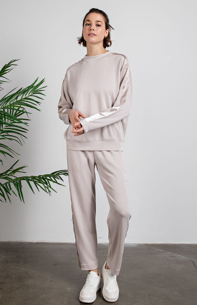 Get ready to elevate your athleisure wardrobe with the Shaye Satin Detail Top by Rae Mode. Crafted from a butter smooth and cooling fabric, this long sleeve top features a chic side satin detail. Pair it with the matching Shaye Satin Detail Pants to turn heads and feel fabulous!