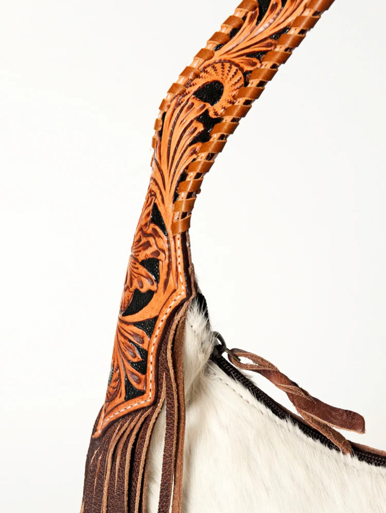 American Darling Annie Western Hobo Bag Hair-On Cowhide & Tooled Leather Shoulder Purse