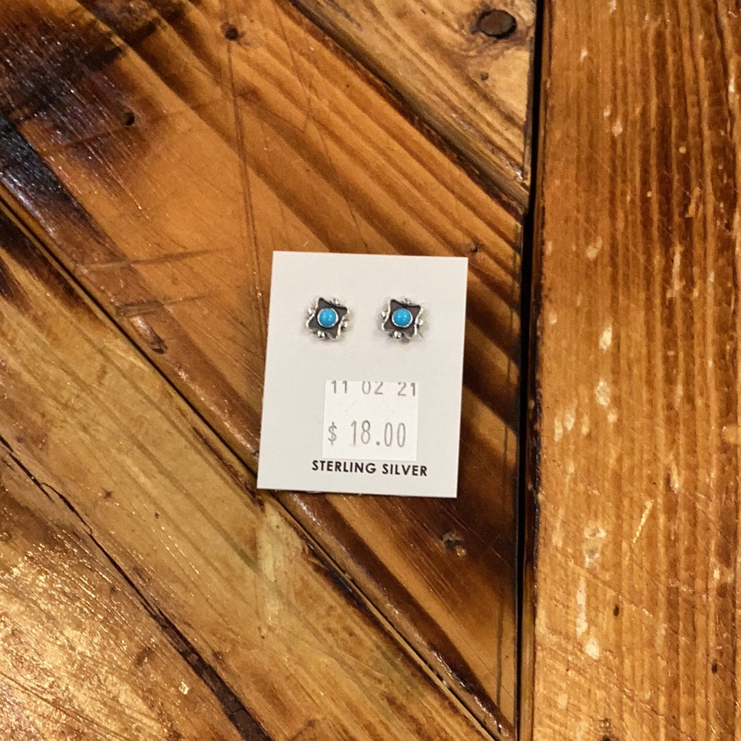 Square Turquoise and Sterling Silver studs, 4 silver dots border.