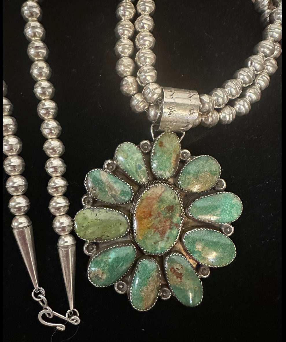 Sterling Navajo Handmade MARKED ES Turquoise Flower Necklace