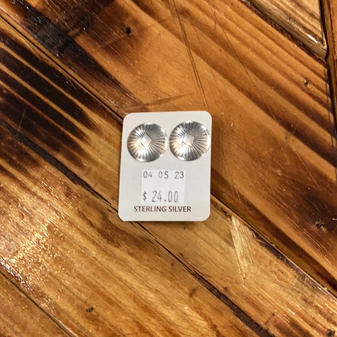 Sterling Silver disk studs with a diamond pattern, roughly the size of a dime. Perfect for everyday wear!