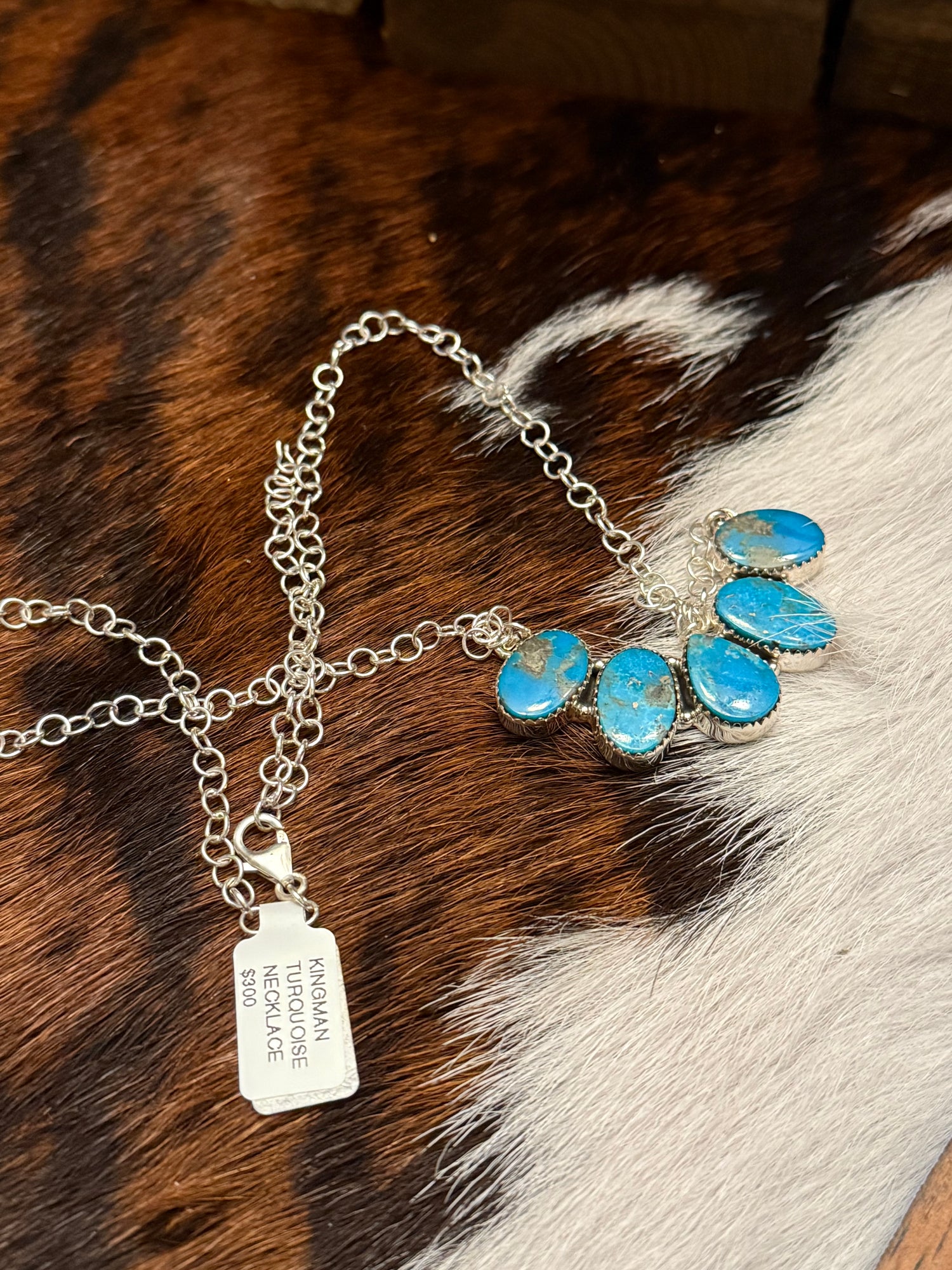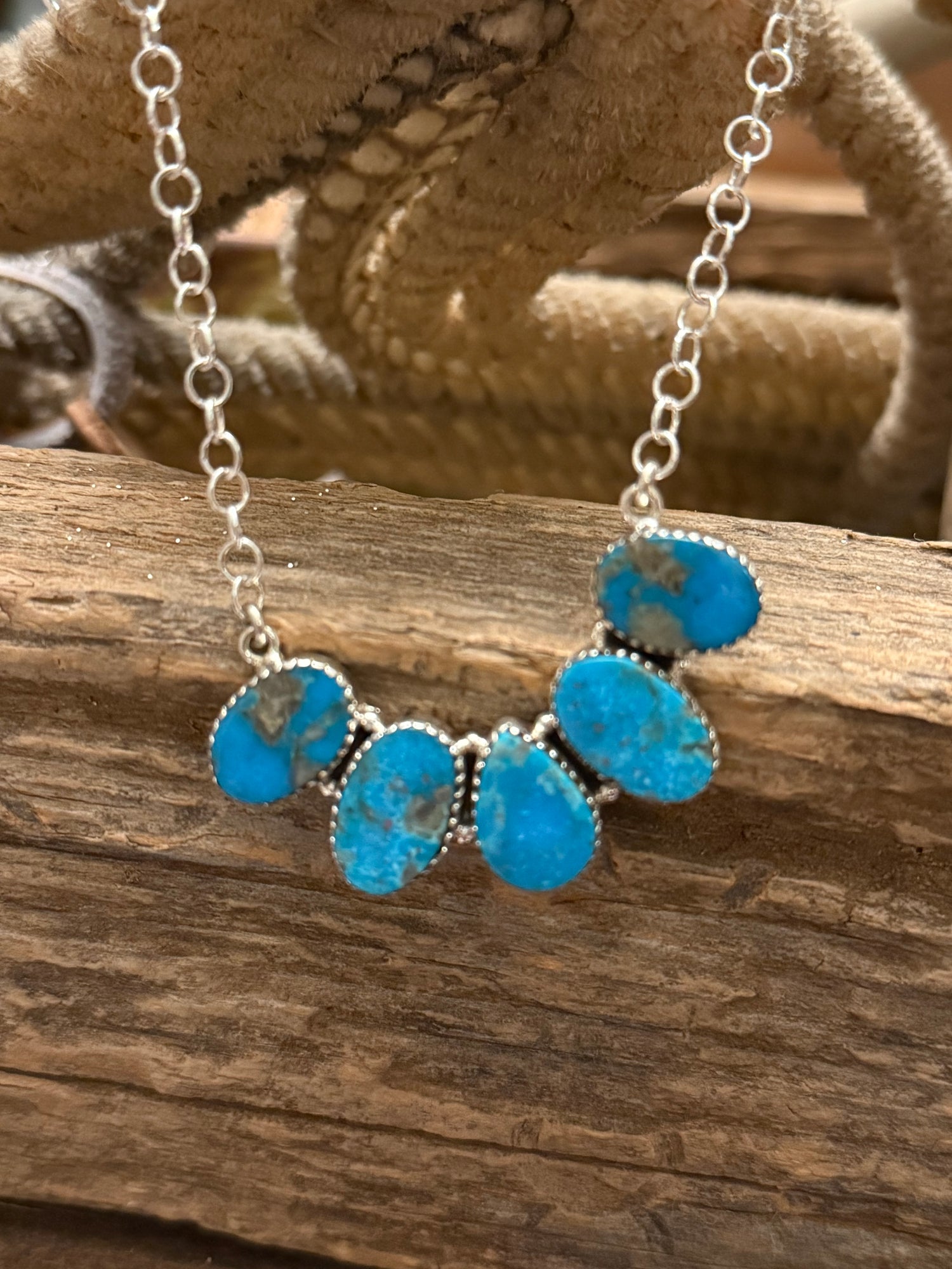 Sterling Silver Handmade Kingman Turquoise 5 Stone Bar Necklace